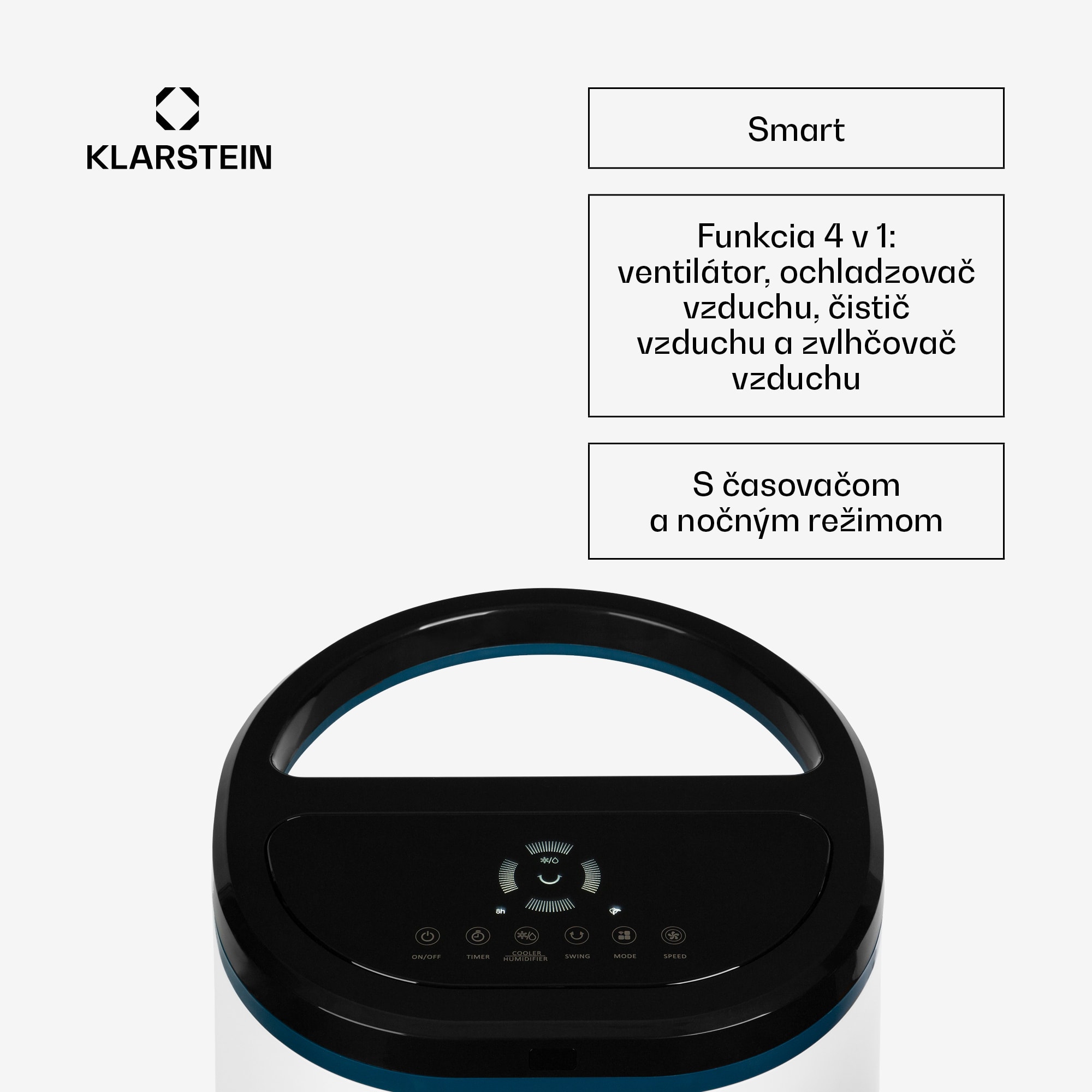 Chladivé osvieženie v horúcich dňoch:Ochladzovač vzduchu Klarstein IceWind Plus Smart 4 v 1 vám spoľahlivo poskytne chladivý prúd vzduchu a naopak v chladných dňoch zaujme aj praktickými funkciami zvlhčovača a čističky vzduchu.Obzvlášť inteligentné: zariadenie Ice Wind Plus Smart môžete ovládať odkiaľkoľvek cez domáce WiFi pomocou aplikácie Klarstein na smartfóne alebo tablete. Štyri rôzne úrovne vetra a tri prevádzkové režimy poskytujú cielené osvieženie pri použití funkcie ventilátora . Prepínateľná oscilácia ventilátora dodáva čerstvý vzduch viacerým osobám prostredníctvom ľavo-pravého kmitania lamiel. Ak sa používa aj ochladzovač vzduchu , chladenie je dostupné po celý deň pri každej činnosti. Dva vymeniteľné chladiace balíčky pre nádrž na vodu môžu tento efekt ešte znásobiť. Integrovaný ionizátor čistí vzduch od pachov a nečistôt. Jednotku možno obsluhovať aj prostredníctvom dotykového ovládacieho panela alebo pohodlne diaľkovým ovládaním.Výkonný a všestranný: Ochladzovač vzduchuKlarstein IceWind Plus Smart 4 v 1 je osviežujúcou odpoveďou na všetky horúce dni v roku.