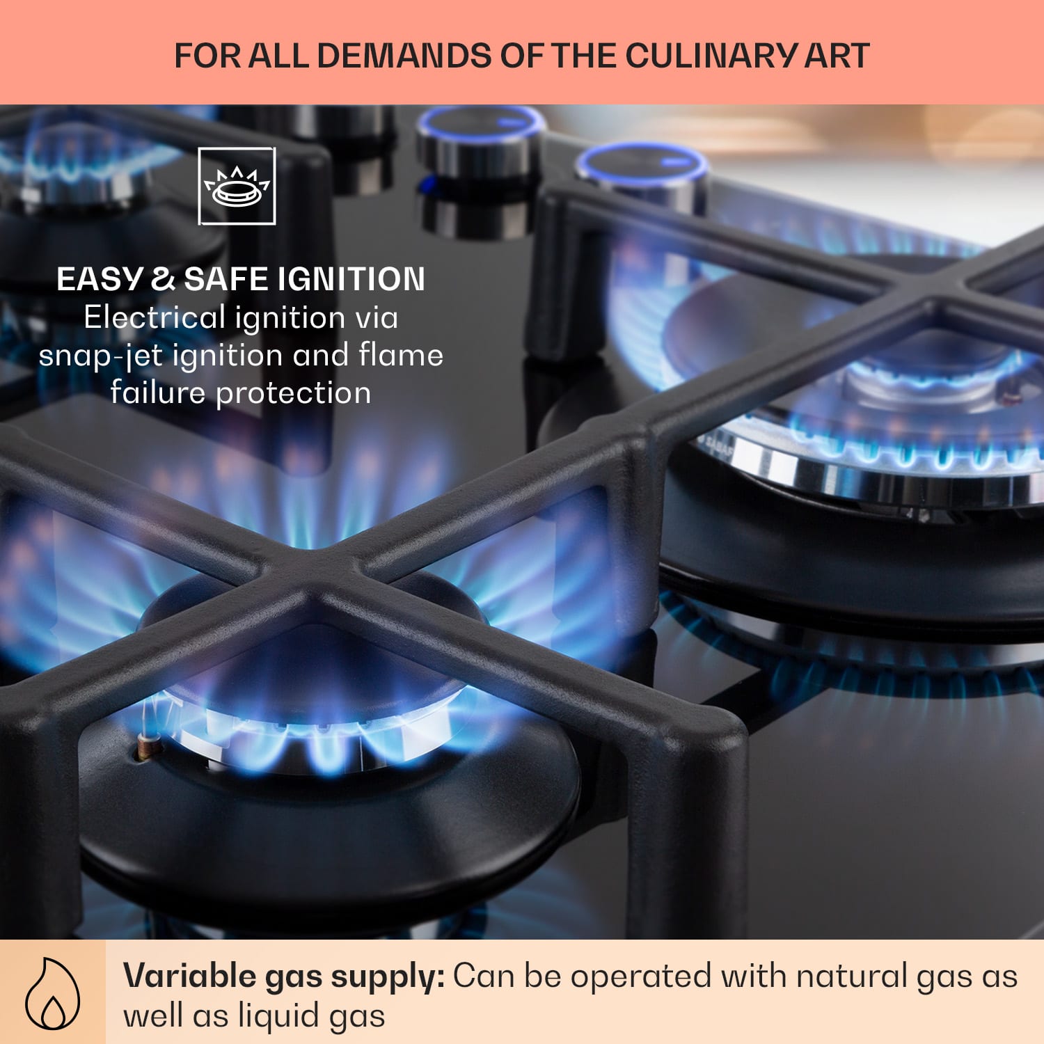 Na chvíľu takmer zabudnutý, no teraz je späť: plynový sporák, ktorý má so svojimi neprekonateľnými výhodami svoje miesto aj v modernej kuchyni. Plyn je nielen efektívnejší a šetrnejší k životnému prostrediu, ale je tiež oveľa viac kontrolovateľný, a teda praktickejší ako varenie na elektrine. Plynová varná doska Klarstein Illuminosa 4 prináša teraz túto možnosť do tvojej kuchyne.Na priestorovo úspornej varnej doske Klarstein Illuminosa 4 sa nachádzajú štyri kvalitné Sabaf horáky, ktoré hrejú poriadne s výkonom 4 kW, 2 x 1,75 kW a 1,0 kW. Všetky horáky distribuujú teplo rovnomerne v strede a na okrajoch hrncov alebo panvíc, všetko sa perfektne a optimálne uvarí. Obidve odnímateľné mriežky z masívnej liatiny sú vhodné pre takmer všetky typy kuchynského riadu, na plameni sú umiestnené presne a bez rizika prevrátenia hrncov. Ovládanie je úplne intuitívne vďaka zrozumiteľným symbolom na veľkých otočných gombíkoch. Integrované LED diódy, ktoré rozsvietia regulátory, sa postarajú o optimálnu viditeľnosť nastavení. V jednoduchej regulácii spočíva veľká výhoda plynových sporákov. Počas procesu varenia je možné neustále upravovať prívod tepla. zmeny veľkosti plameňa sa bezprostredne prejavia na zmene teploty hrnca alebo panvice. Samozrejme sme venovali pozornosť aj bezpečnosti pri sporáku: dodatočný oheň na zapálenie nie je potrebný. Plynový plameň sa zapáli jednoducho pomocou elektrického zapaľovania. Ochrana pred výpadkom plameňa uzatvorí prívod plynu do horáka, ak by plameň z akéhokoľvek dôvodu zhasol.Po varení je možné v prípade potreby plynovú varnú dosku jednoducho očistiť: kvôli tomu má povrch z ľahko umývateľného, 6 mm hrubého, tvrdeného keramického skla. Nielen že vyzerá neuveriteľne elegantne, úžasne ľahko sa tiež čistí.Efektívne varenie pri nižších nákladoch so všetkými výhodami plynového sporáka: plynová varná doska Illuminosa 4 od spoločnosti Klarstein presvedčí nielen amatérskych kuchárov.