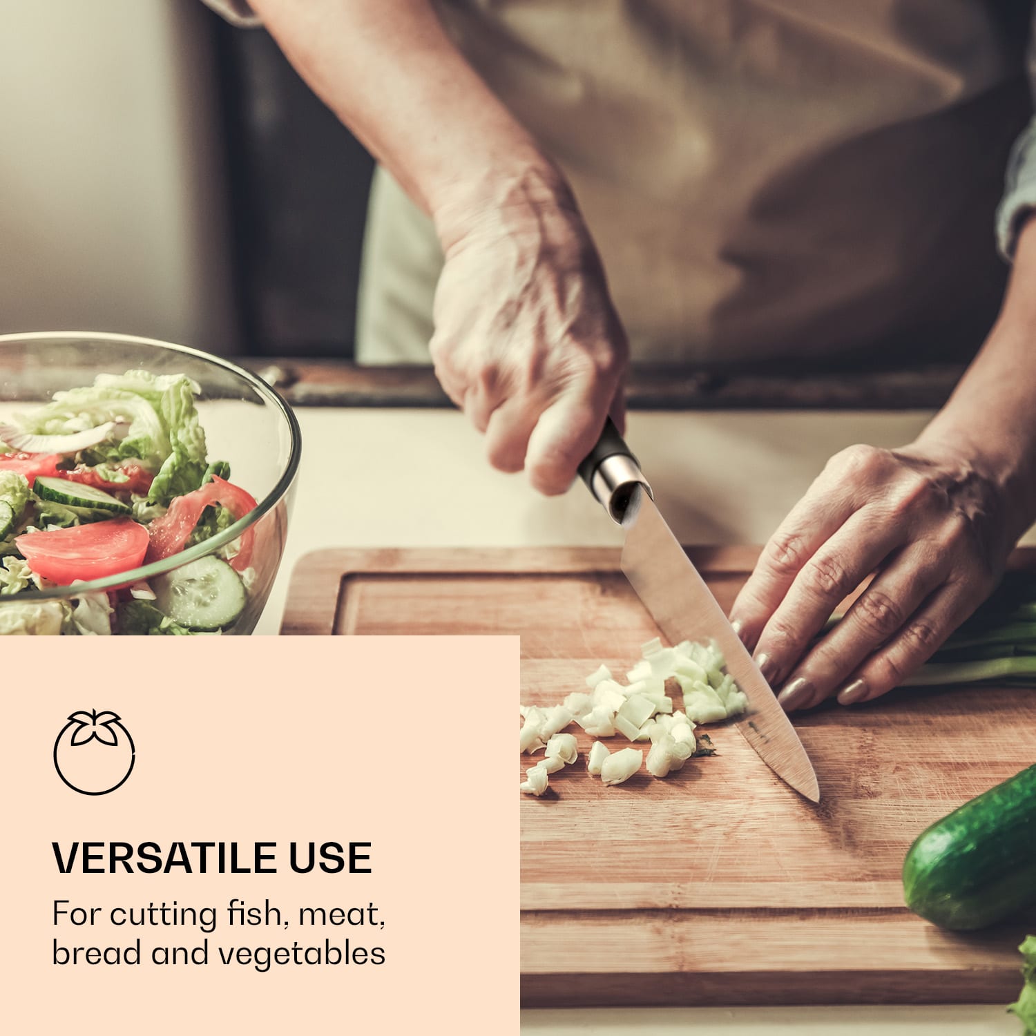 Maximálny pôžitok z čerstvých surovín si vyžaduje ten správny nôž. Presne preto obsahuje blok na nože Kitano XL od Klarstein 12 rôznych nožov s precíznymi čepeľami z tvrdenej ocele. Vďaka ergonomickému tvaru a protišmykovému materiálu sa nože dobre držia v ruke. Môžete ich bezpečne uložiť do príslušného bloku na nože. Vďaka krytu z plexiskla a otvorom na dne je tiež veľmi hygienický. Luxusný drevený blok zároveň dodá vašej kuchyni lesk. Čepeľ a ostrosť v harmónii – to je kulinárske umenie ďalekého východu vo vašej kuchyni!