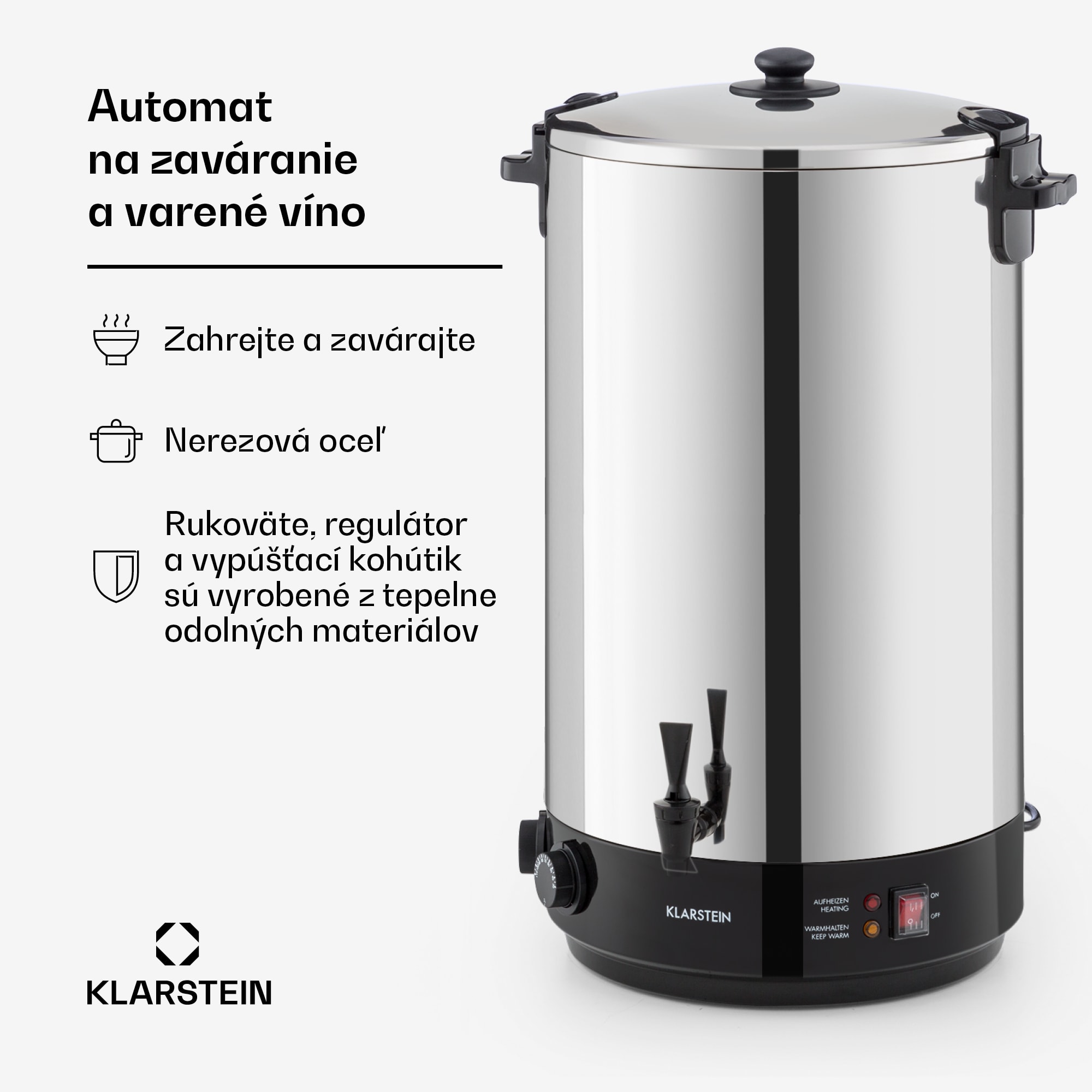Pochúťky zo zaváracieho pohára: zavárací hrniec Klarstein KonfiStar 60 je hviezdou, pokiaľ ide o zaváranie domácich marmelád, vlastných klobásových výtvorov alebo mäsových špecialít. Dnes sa varí, zavára! So zaváracím hrncom Klarstein KonfiStar 60 prichádza do jedálnička rozmanitosť – s dlhodobým efektom. 60-litrový zavárací hrniec má dostatok miesta na zakonzervovanie obsahu Vašich zaváracích pohárov pomocou tepla na trvanlivé suroviny. Či už sa jedná o zber ovocia alebo zeleniny, ako sú čerešne, fazuľa alebo hrach zo záhrady, uhorky, sladké marmelády, klobásové zmesi alebo guláš, pečené mäso a rolády – v KonfiStar 60 sa stanú trvanlivými. Ovládanie je extrémne jednoduché: naplnené poháre umiestnite v hrnci, hrniec naplňte vodou, nastavte potrebnú teplotu zavárania od 30 do 110 °C, nastavte dobu zavárania od 20 do 120 minút a môžete začať. Hrniec automaticky udržiava zvolenú teplotu a na konci doby zavárania sa vypne. To však nie je všetko, čo zariadenie KonfiStar 60 od spoločnosti Klarstein dokáže. Vďaka svojmu interiéru z ušľachtilej ocele, ktorý neskresľuje chuť a je hygienický, tepelne izolovanému vypúšťaciemu kohútiku a integrovanej funkcii udržiavania tepla je tiež ideálny ako zariadenie na dávkovanie horúcich nápojov, ako sú horúci čaj, punč alebo varené víno. Obohacuje tak večierky, bufety alebo konferenčné miestnosti. Zavárací hrniec Klarstein KonfiStar 60 osloví aj svojím vonkajším vzhľadom. Vonkajší plášť je vyrobený z leštenej ušľachtilej ocele na čiernej kovovej základni. Tepelne izolované rukoväte umožňujú jednoduchú prepravu, uzáver veka zasa zaručuje, že veko z ušľachtilej ocele drží pevne a obsah zostane bezpečne v hrnci.