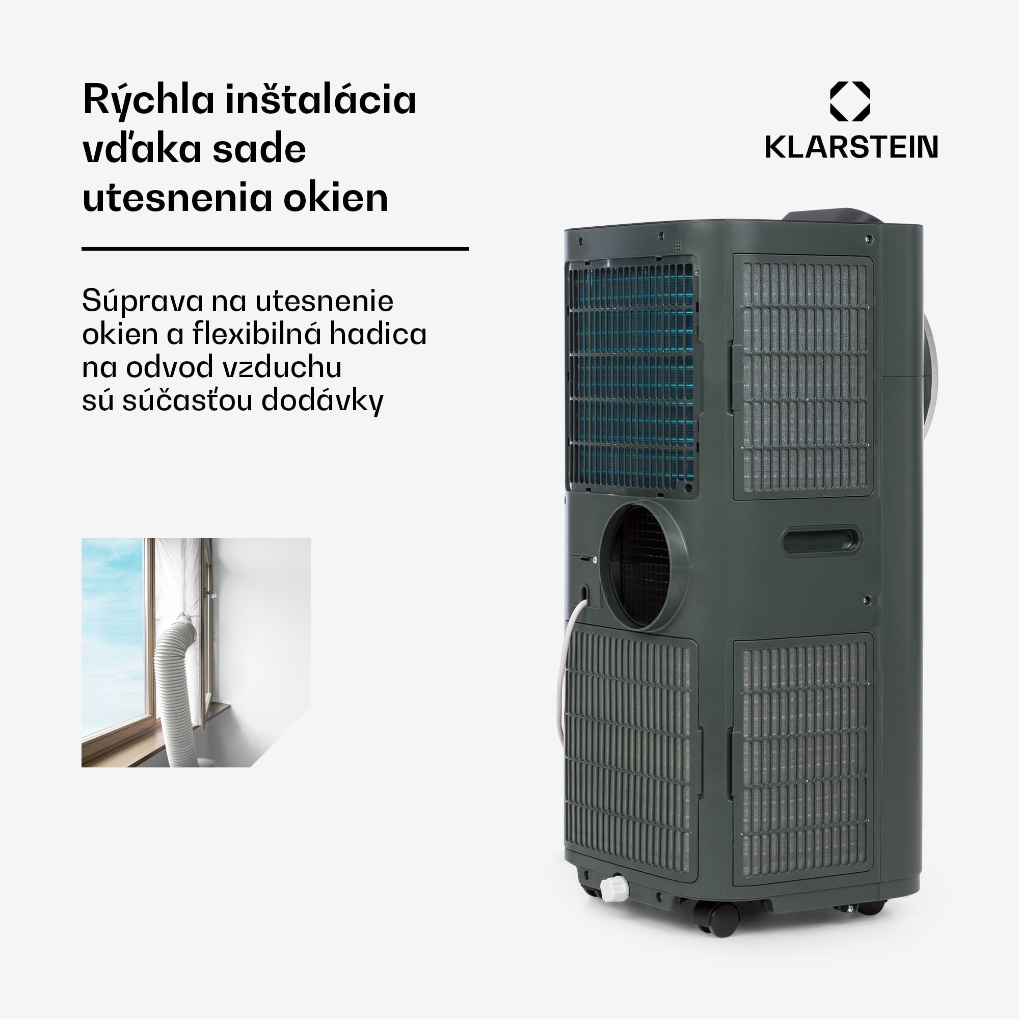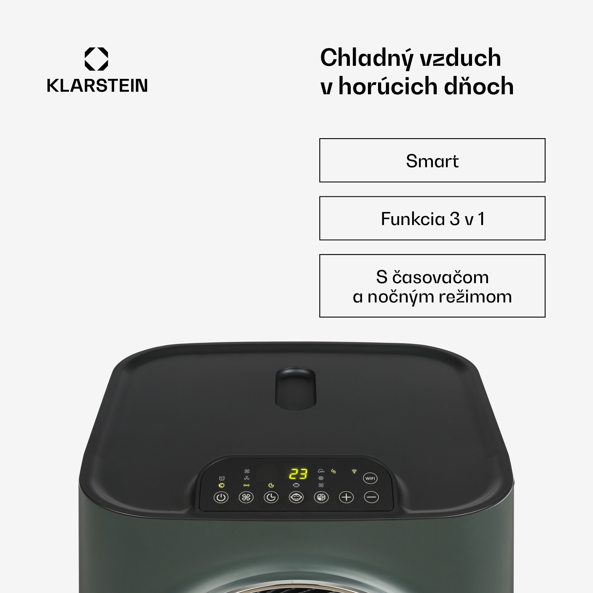 Plný výkon pre príjemný chládok: vychutnajte si dokonalú sviežosť v každej miestnosti s klimatizáciou Klarstein Kraftwerk Smart 12K! Klimatizácia Klarstein Kraftwerk Smart 12K poskytuje dokonalú letnú pohodu v obytných alebo pracovných miestnostiach s rozlohou 35 až 59 m². Výkonná klimatizácia s ventiláciou v 3 výkonových stupňoch a odvlhčovačom vzduchu ochladí počas horúcich letných dní váš interiér na príjemnú teplotu v rozmedzí 18 až 32 °C. Vďaka prevádzkovej hlučnosti len 50 dB min. a nočnému režimu vám spotrebič umožní pokojne zaspať aj počas horúcich nocí. Pomocou aplikácie Klarstein môžete zariadenie Kraftwerk Smart 12K ovládať veľmi pohodlne zo smartfónu, zatiaľ čo ovládací panel na hornej strane umožňuje jednoduché manuálne ovládanie a diaľkové ovládanie poskytuje ešte väčšie pohodlie. Táto mobilná klimatizácia do bytu má množstvo ďalších funkcií, ako napríklad detský režim so zníženou prevádzkovou hlučnosťou, režim sušenia alebo až 24-hodinový časovač. Stavové LED diódy jasne ukazujú, ktorá funkcia bola zvolená. S klimatizáciou Klarstein Kraftwerk Smart 12K si môžete zachovať vždy chladnú hlavu, a to aj počas horúcich dní.