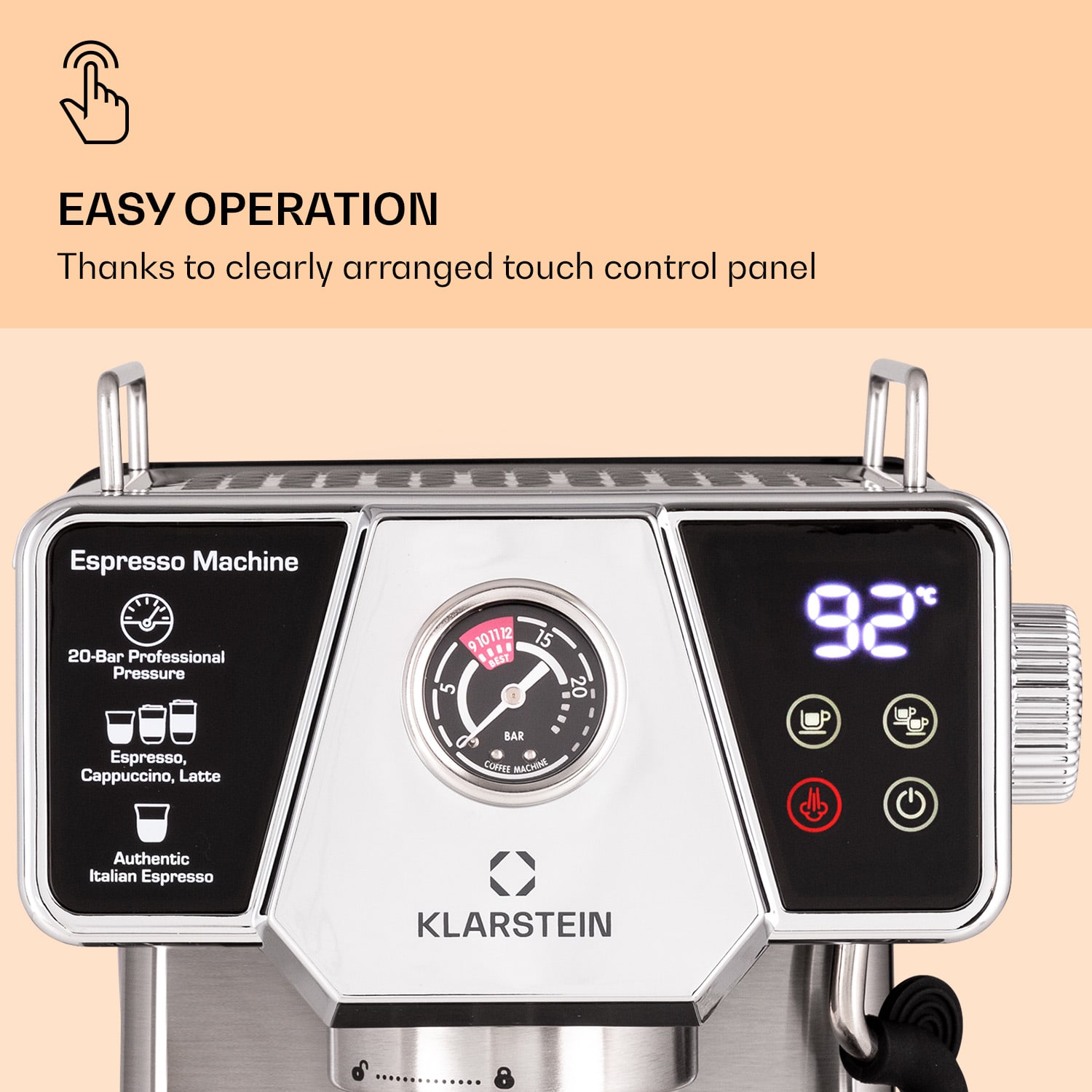 Pre vysoko kvalitný pôžitok z kávy: Libeica od Klarstein je elegantný espresso kávovar v pútavom vyhotovení z nehrdzavejúcej ocele s ukazovateľom tlaku a teploty. S vysokým výkonom 1350 wattov a tlakom 19 barov uvoľní zo všetkých kávových zŕn tú najlepšiu chuť a vôňu. Tento Kávovar na espresso vďaka klasickému pákovému dizajnu z nehrdzavejúcej ocele umožňuje pripravovať mletú kávu ako aj espresso prášok. Pomocou napeňovacej trysky vyčarujete krémovú penu na cappuccino alebo latte Macchiato. Plná odnímateľná nádrž na vodu vystačí so svojim veľkým objemom na cca 10 šálok kávy.