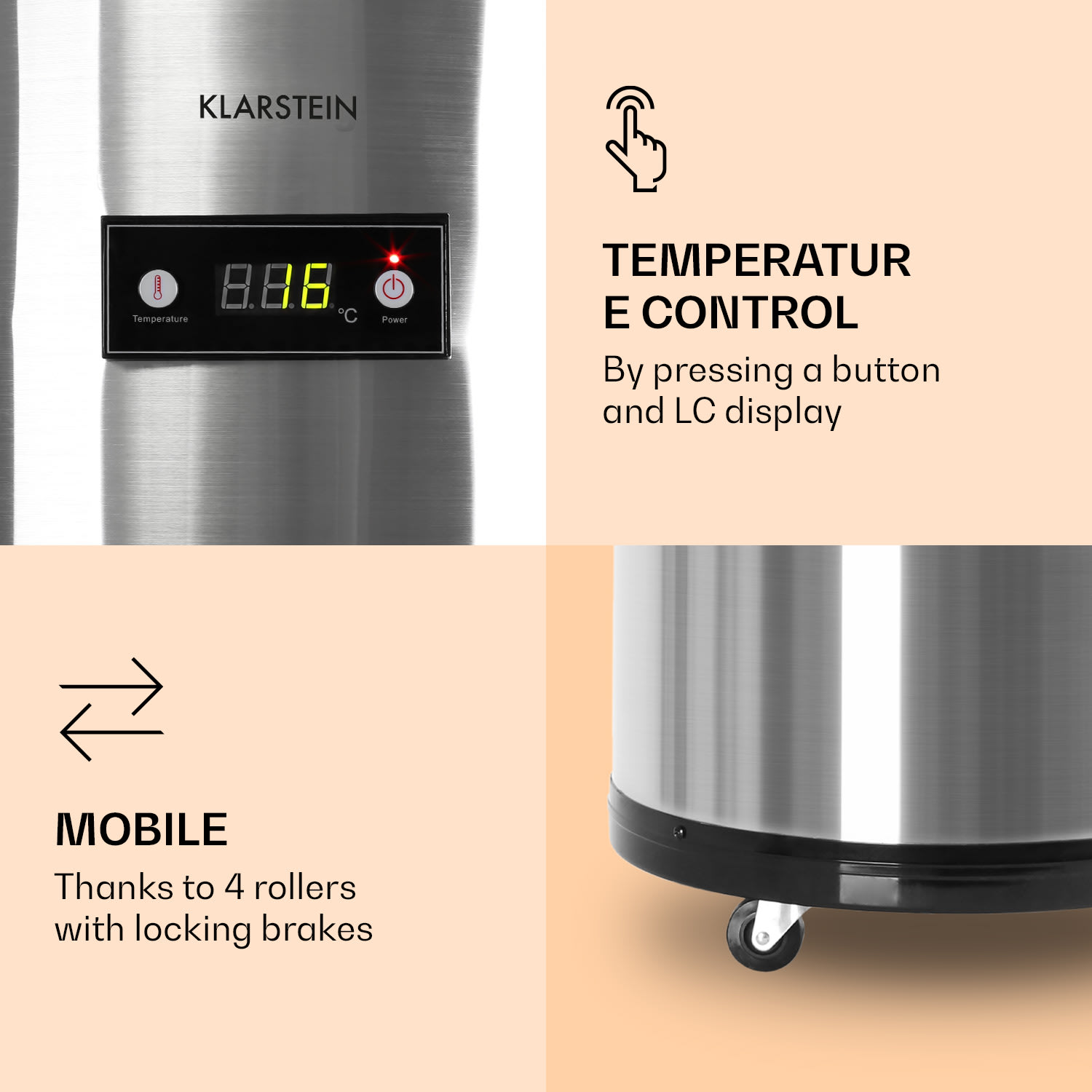Klarstein Mr. Barbot je prenosná barová chladnička, ktorá vám pomôže dodávať studené nápoje vďaka svojmu objemu 50 l. Sklenené veko na hornej strane sa dá v strede odklopiť, čo zjednodušuje rýchle vyberanie nápojov. Vďaka štyrom kolieskam a rukovätiam pripevneným na hornej strane sa dá Mr. Barbot ľahko premiestniť na miesto, kde je potrebný. Táto Mini chladnička je ideálna na rôzne príležitosti. Štyri dodávané koše na nápoje môžete zavesiť na vnútornú a vonkajšiu stranu chladiaceho boxu na nápoje, aby ste mali fľaše chladné alebo na dosah.