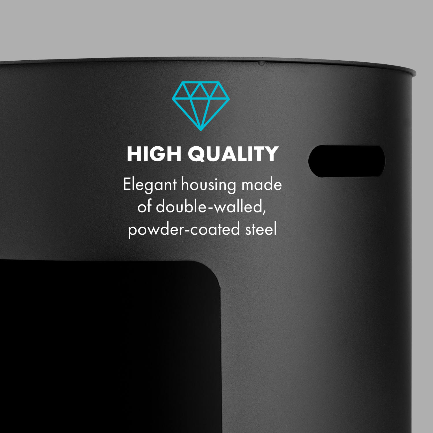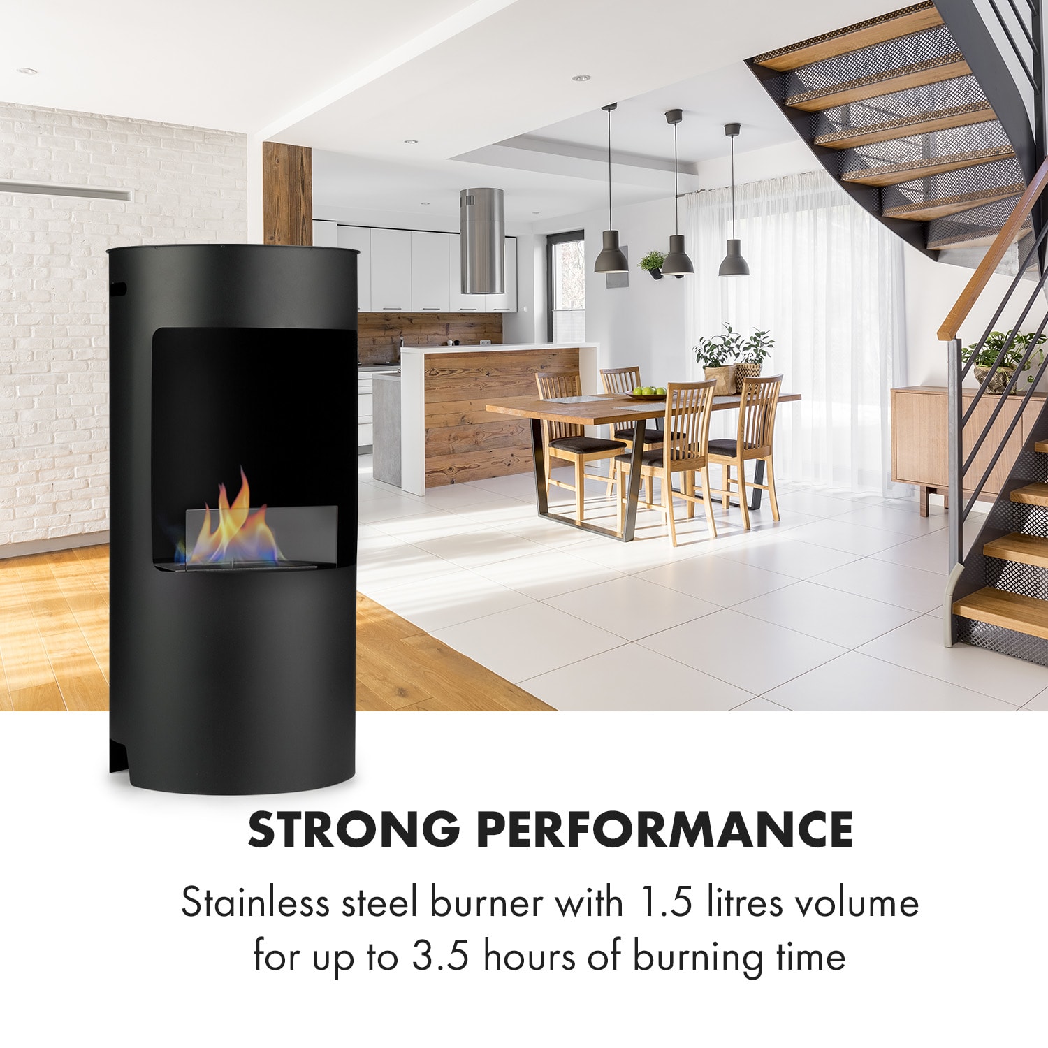 Nič nie je útulnejšie ako skutočný oheň: etanolový krb Klarstein Phantasma Niro okamžite šíri útulnú, romantickú atmosféru.Ovládanie kozuba je veľmi jednoduché: etanol naleješ do spaľovacej komory, zapáliš, hotovo! Etanolový krb Phantasma Niro nepotrebuje komín, takže ho môžeš umiestniť kdekoľvek, kde sa vyžaduje čaro ohňa bez sadzí a dymu. Jeho cylindrická konštrukcia z dvojstennej ocele sa postará o pevné postavenie. Predná časť z bezpečnostného skla chráni pred kontaktom s plameňmi. Bezpečnostný horák s objemom 1,5 litra má dobu horenia až 3,5 hodiny a postará sa o teplo v miestnostiach do 30 m². Vďaka hasiacej pomôcke sa dá plameň úplne nekomplikovane uhasiť.Moderný dizajn etanolového krbu Klarstein Phantasma Niro a použité materiály, ktorými sú oceľ a sklo, sú pôsobivé a bez problémov sa začlenia do každého obytného prostredia.Či už ako hlavný dekoratívny prvok, alebo elegantný detail: so zariadením Phantasma Niro od spoločnosti Klarstein si môžeš v každej izbe užívať pohľad na horiace plamene.