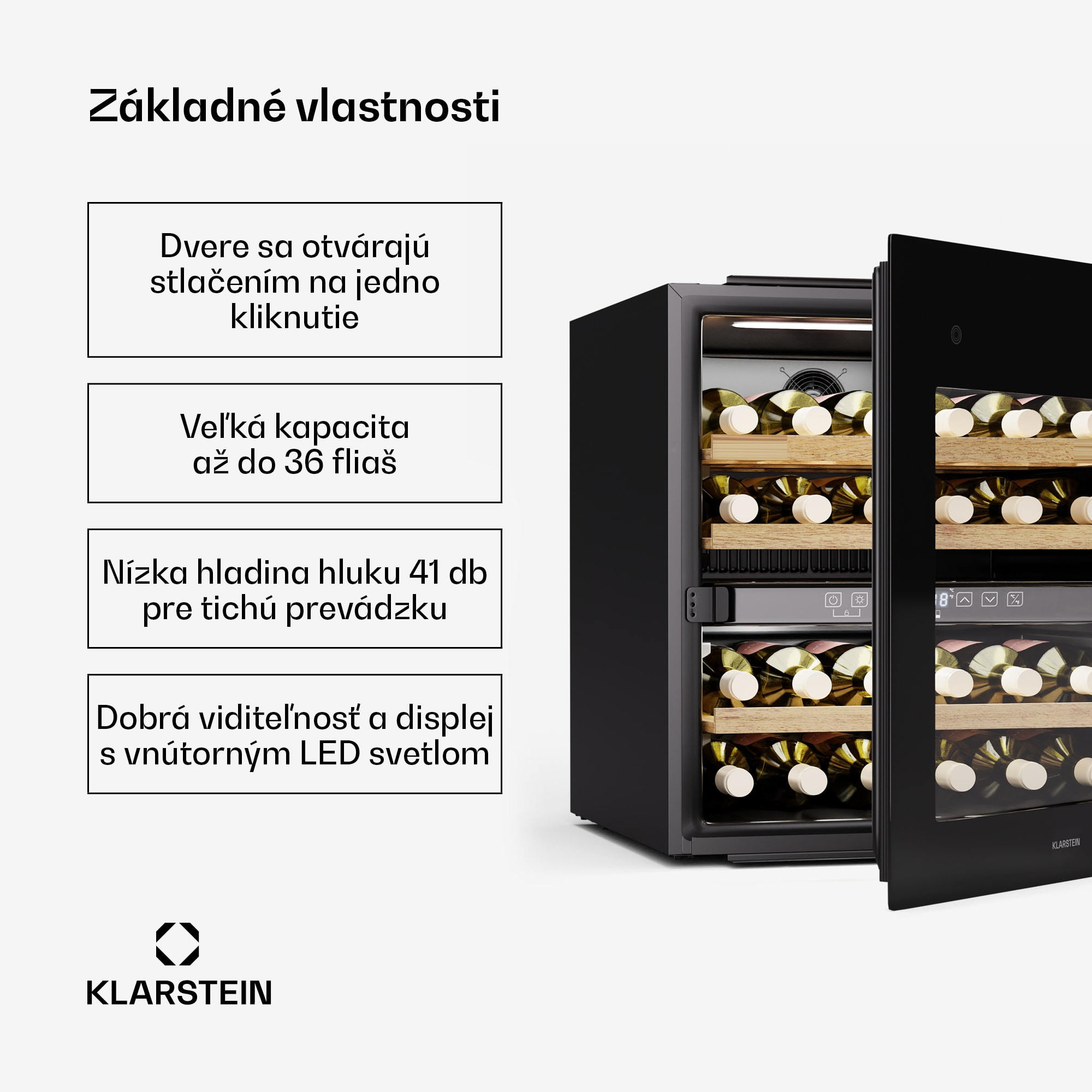 Klarstein Rhone 36 Duo chladnička na víno, 36 fliaš, LED ovládanie, push-to-open, tichá –Kúpiť