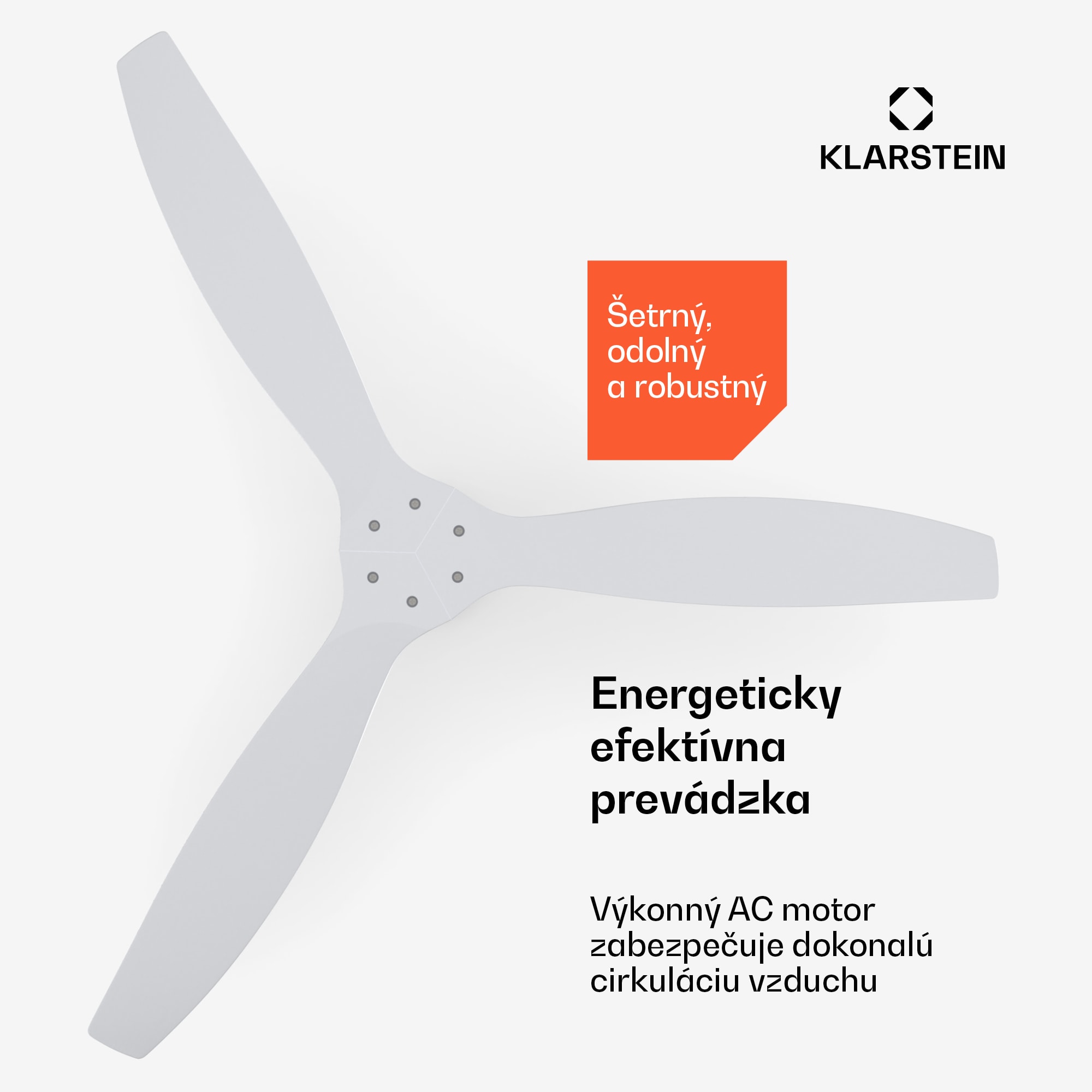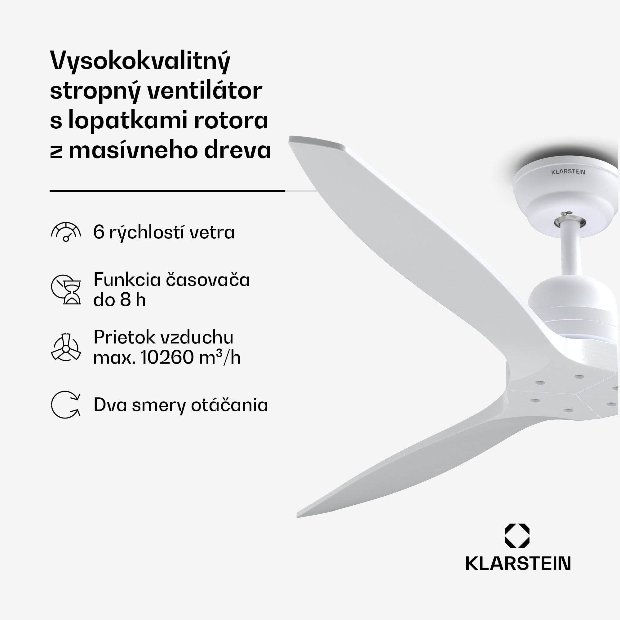 Stropný ventilátor Klarstein Santa Elena spája eleganciu s výkonom. S priemerom 52″ (132 cm) a tromi lopatkami z pravého dreva ponúka výkonné osvieženie pre váš domov.Vďaka 3 lopatkám, 6 stupňom rýchlosti a prietoku vzduchu až 9 060 m³/h prináša stropný ventilátor príjemný vánok do každej miestnosti. Integrovaný časovač vypnutia s dobou prevádzky až 8 hodín umožňuje flexibilné použitie, napríklad pri poholnom zaspávaní.Pohodlne sa ovláda pomocou diaľkového ovládača a jednoduchá stropná montáž umožňuje priamu inštaláciu na elektrickú sieť. Stropný ventilátor má 6 nastavení rýchlosti (vysoká, stredná, nízka) a stlačením tlačidla premiestni až 9 060 m³ vzduchu za hodinu. Napriek svojmu výkonu zostáva prevádzkový hluk príjemne nízky, maximálne 45 dB.Tri robustné lopatky z pravého dreva nielenže dodávajú sofistikovaný vzhľad, ale zabezpečujú aj hladký chod. Štvorstupňový časovač vypnutia umožňuje jednoduchú obsluhu, ktorá je praktická najmä ako pomôcka pri zaspávaní.Všetky funkcie zariadenia Santa Elena možno pohodlne ovládať pomocou diaľkového ovládača. Letný a zimný režim umožňujú celoročnú prevádzku. V lete cirkuluje chladný vzduch smerom nahor, zatiaľ čo v zime efektívne rozvádza teplý vzduch zhromaždený pod stropom smerom nadol, čím znižuje náklady na vykurovanie.Stropný ventilátor Klarstein Santa Elena zaujme nielen svojimi funkciami, ale aj pohodlným diaľkovým ovládaním. Upozorňujeme, že batérie potrebné pre diaľkový ovládač nie sú súčasťou balenia.