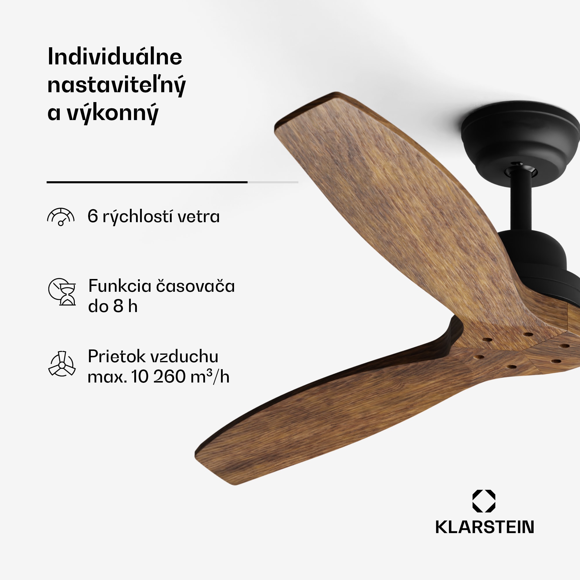 Zažite maximálny komfort a moderný dizajn so stropným smart ventilátorom Klarstein Santa Elena. Jednosmerný motor s nízkohlučným medeným guľôčkovým ložiskom umožňuje presné a tiché ovládanie, vďaka čomu je o pôsobivých 80 % energeticky efektívnejší ako bežné stropné ventilátory.Ventilátor so šiestimi úrovňami rýchlosti ponúka všestranný výber prúdenia vzduchu, ktorý možno prispôsobiť individuálnym potrebám. Jeho ultraľahké lopatky z pravého dreva v kombinácii s jednosmerným motorom zaručujú takmer nehlučnú prevádzku a uvoľnenú atmosféru.Vďaka inteligentným funkciám, ako je ovládanie cez aplikáciu Smart APP, diaľkové ovládanie alebo hlasové ovládanie, možno ventilátor ovládať odkiaľkoľvek v dome. Obojsmerná prevádzka umožňuje používanie v letnom a zimnom režime, čím sa šetria náklady na energiu počas celého roka. V lete ventilátor prenáša chladný vzduch smerom nahor a zabezpečuje príjemný chládok, zatiaľ čo v zime rovnomerne rozvádza teplý vzduch smerom nadol.Jednoduchá inštalácia pomocou dodaných spúšťacích tyčí 15 cm/25 cm umožňuje flexibilné umiestnenie ventilátora v miestnostiach s rôznou výškou stropu. Stropný smart ventilátor Klarstein Santa Elena sa dodáva spolu s diaľkovým ovládačom a je dokonalým doplnkom do každej domácnosti, ktorá oceňuje moderný komfort a atraktívny dizajn.
