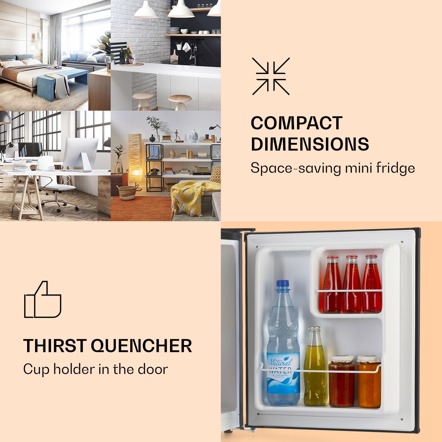 Chladnička Klarstein Scooby udržiava nápoje pri ideálnej teplote a vďaka svojim kompaktným rozmerom sa zmestí kamkoľvek. Vďaka najmodernejšiemu chladiacemu systému je jej prevádzka príjemne tichá: vďaka kompresnému chladeniu dosahuje nízke teploty bez väčšej námahy. Na dvoch úrovniach pojme nápoje alebo občerstvenie a do mimoriadne veľkej priehradky vo dverách sa bez problémov zmestia aj fľaše s objemom až 2 litre. Expert na úsporné chladenie: Mini chladnička Scooby od Klarstein vám poskytne osviežujúco chladené nápoje a občerstvenie.