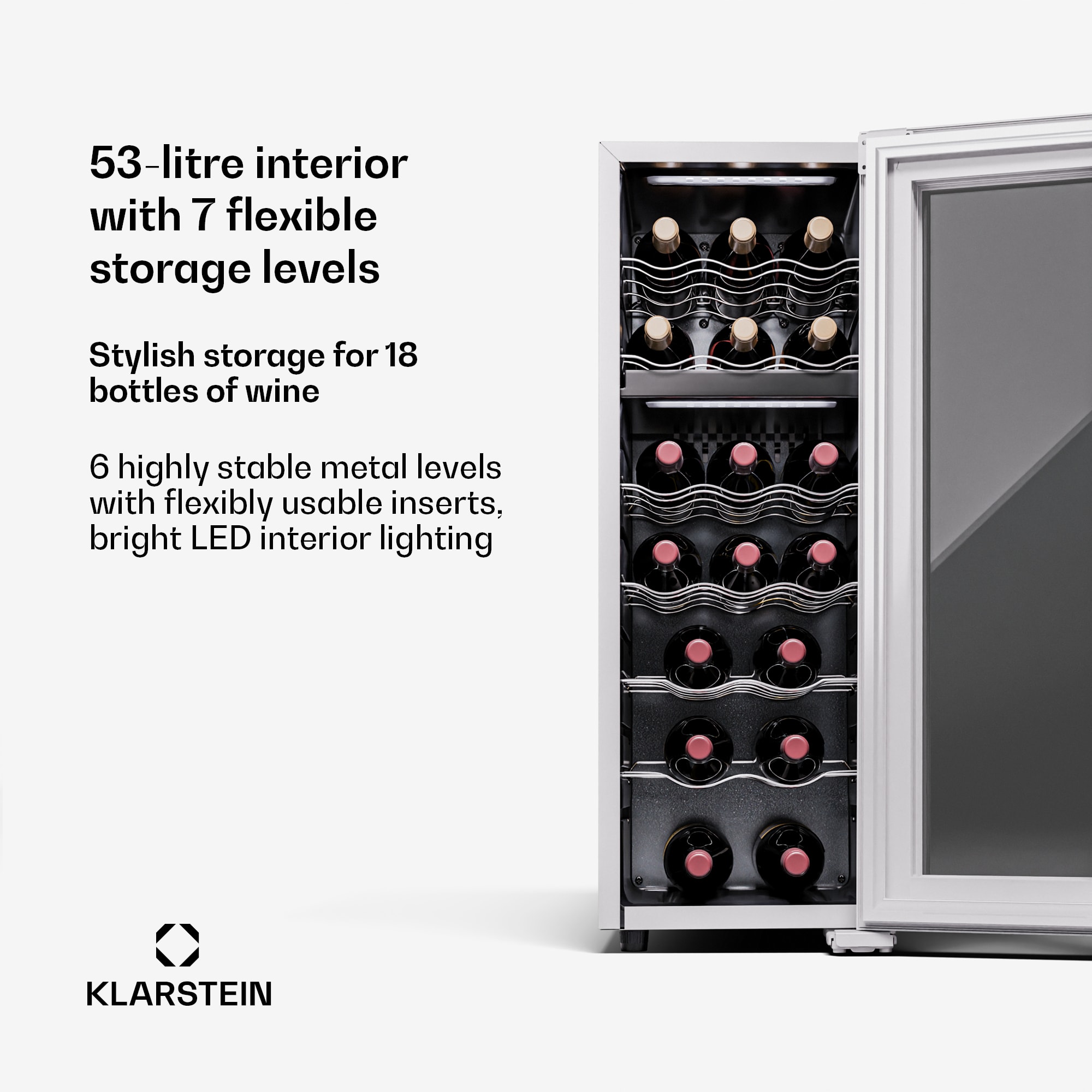 Klarstein Shiraz 18 Duo, chladnička na víno, 2 zóny, 53 l/18 fliaš, 5-18 / 5-18 °C, dotykové ovládanie