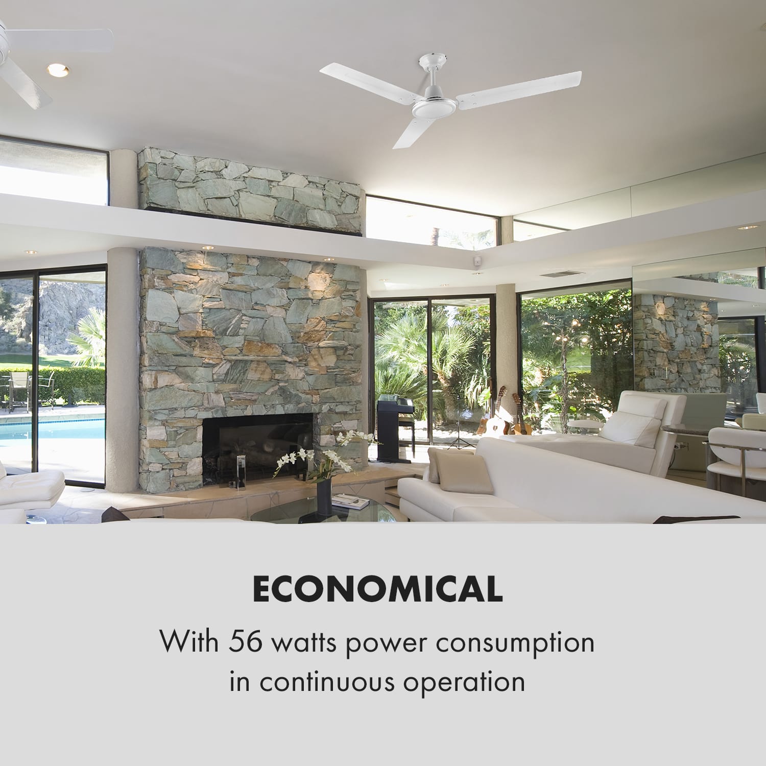 Stropný ventilátor Klarstein Spin Doctor prinesie do každej miestnosti osviežujúci vzduch. Vďaka príkonu 55W sa tento ventilátor vyznačuje príjemne nízkou spotrebou aj pri dlhej prevádzke. Intenzitu cirkulácie vzduchu možno regulovať prostredníctvom troch rýchlostných stupňov.Ventilátor sa riadi nástenným vypínačom, ktorý možno nahradiť aj za vypínač od svetla.Ventilátor je príťažlivý aj opticky a vynikne v každej miestnosti: telo z bielej, lakovanej nerezovej ocele podčiarkuje luxusný nádych a hodí sa do moderných i klasických štýlov zariadenia.Prosím, majte na vedomí, že elektroinštalácie má vykonávať len kvalifikovaný personál. Preto na inštaláciu zavolajte profesionálneho elektrikára.Dostupné farby: biela, čierna (číslo produktu: 10028296)