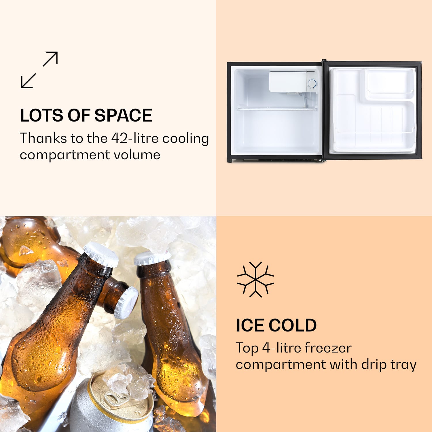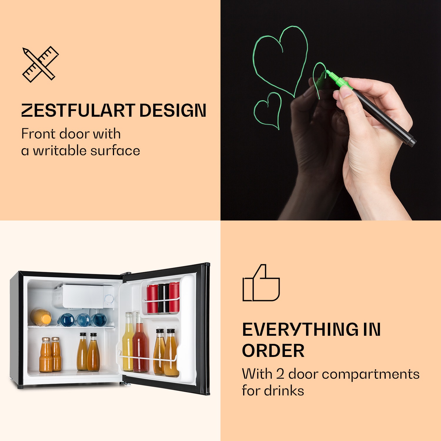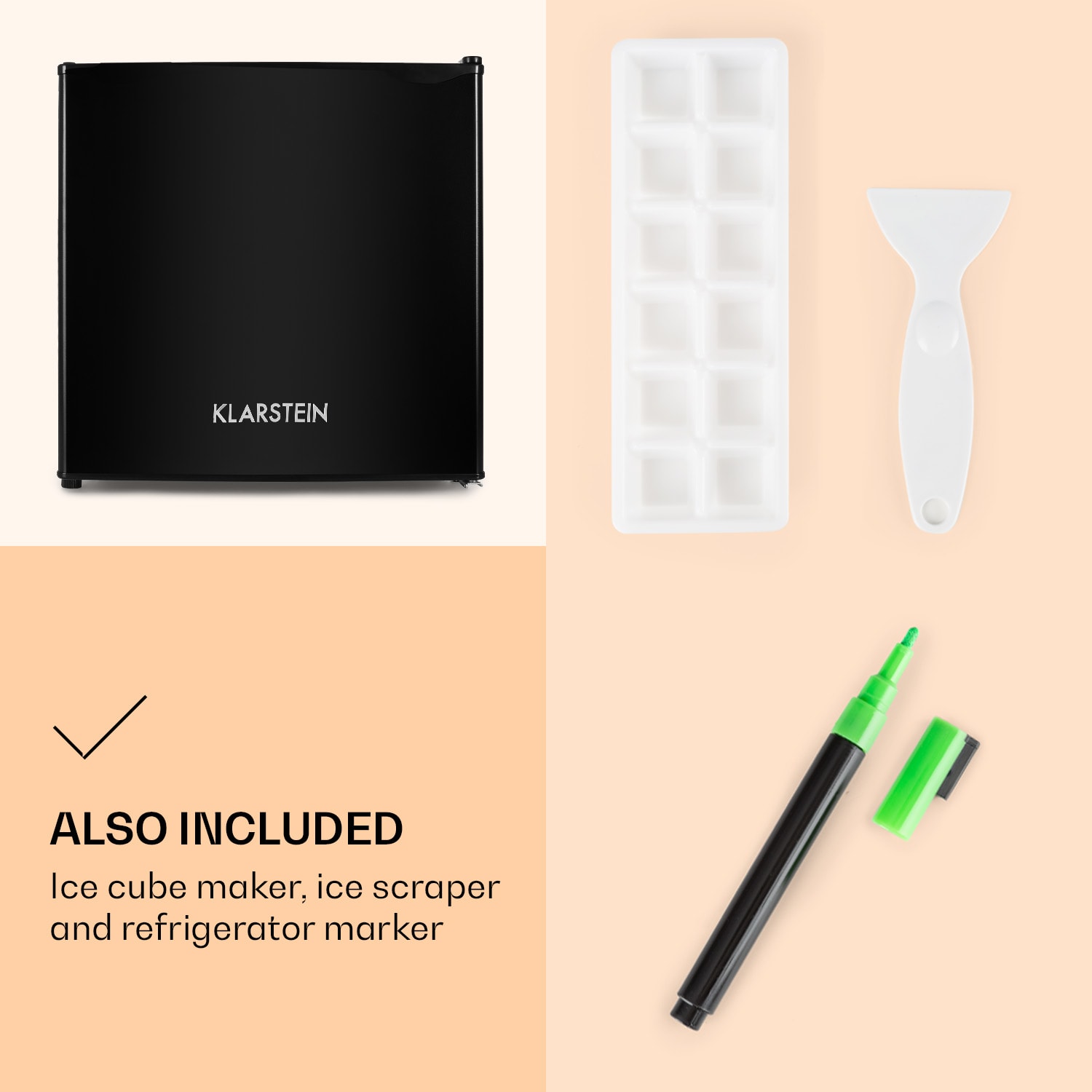 Kompaktné prekvapenie: Chladnička Klarstein Spitzbergen Aca pre všetky jednočlenné domácnosti, internáty či hosťovské izby. Chladnička prináša severský chlad v tom najmenšom rozmere. Objem 46 litrov predurčuje chladničku do jednočlenných domácností, ale taktiež ako doplnok na chaty, internáty, do víkendových domov, pivníc alebo dielní. Spotreba energie korešpomduje s energetickou triedou F.Nezáleží na tom, či chcete uskladniť šťavu, mlieko, syr, klobásu alebo zeleninu: Pri chladničke Spitzbergen Aca sa nie je potrebné pýtať, kde sa čo nachádza, keďže ponúka prehľadnú organizáciu. Dve poschodia zabezpečujú prehľadné usporiadanie potravín. Jogurty a maslo si nájdu svoje miesto na dvoch praktických poličkách na dvierkach. Malý mraziaci priečinok je zase vhodný na prípravu kociek ľadu, ale taktiež aj na skladovanie zmrzliny. Správnu teplotu chladenia nastavíte 5-stupňovým regulátorom.Sviežosť do najmenších miestností! Chladnička Spitzbergen Aca od Klarsteinu je expert na chladenie s kompaktnými rozmermi.Upozornenie: Pri dodaní je pero suché. Zatlačte špičku pera, aby ste aktivovali farebný tok.