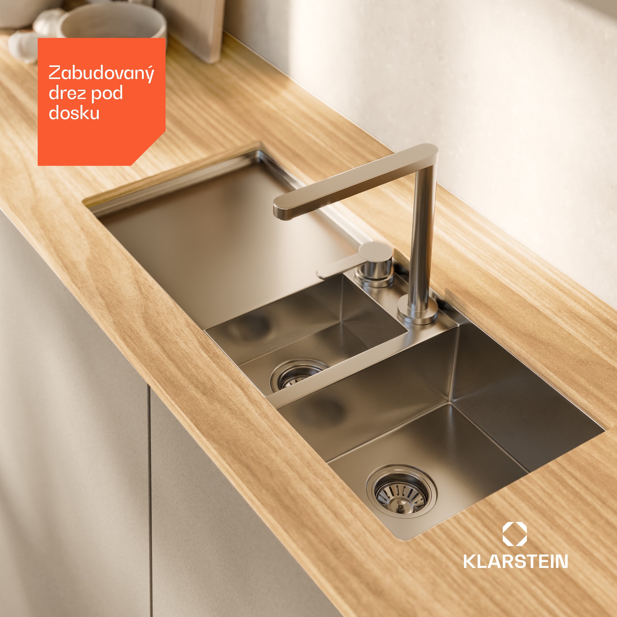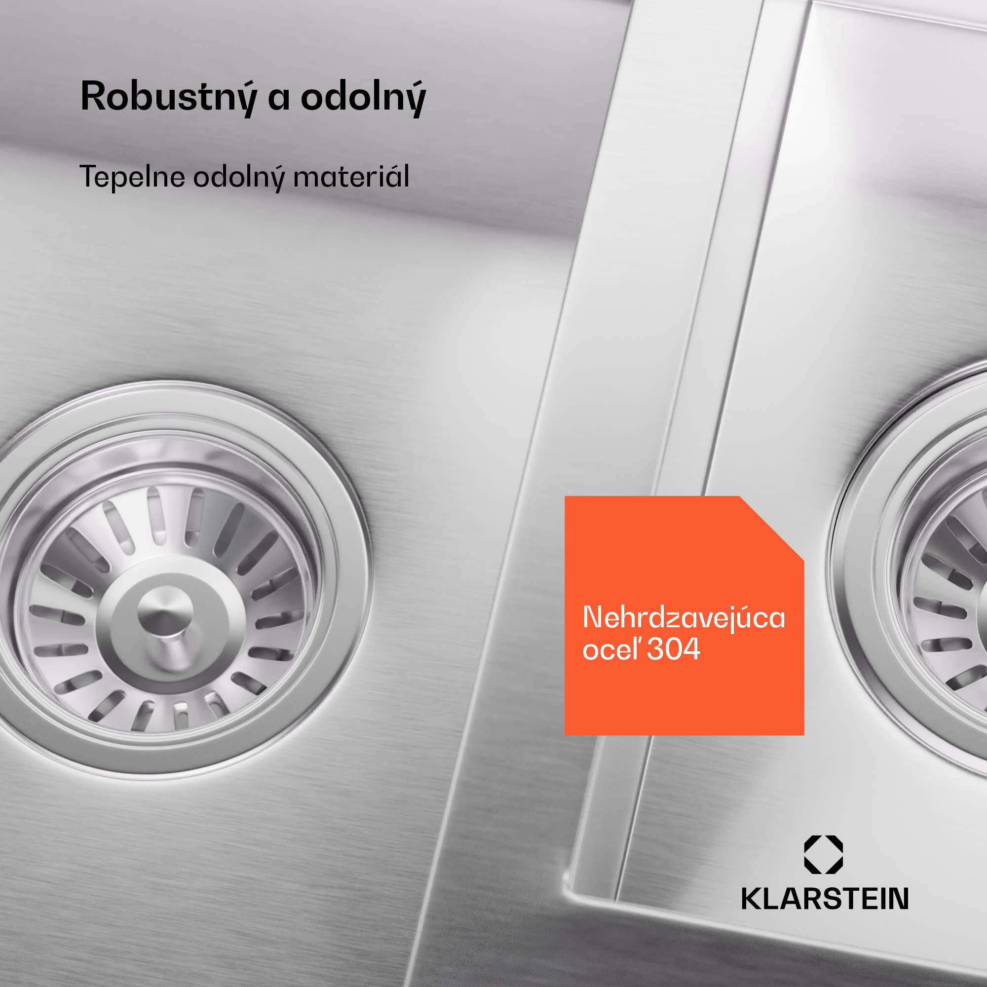 Klarstein TitanSteel kuchynský drez s odkvapkávačom, 100 x 45 cm, 2 umývadlá, nehrdzavejúca oceľ, odolný voči teplu