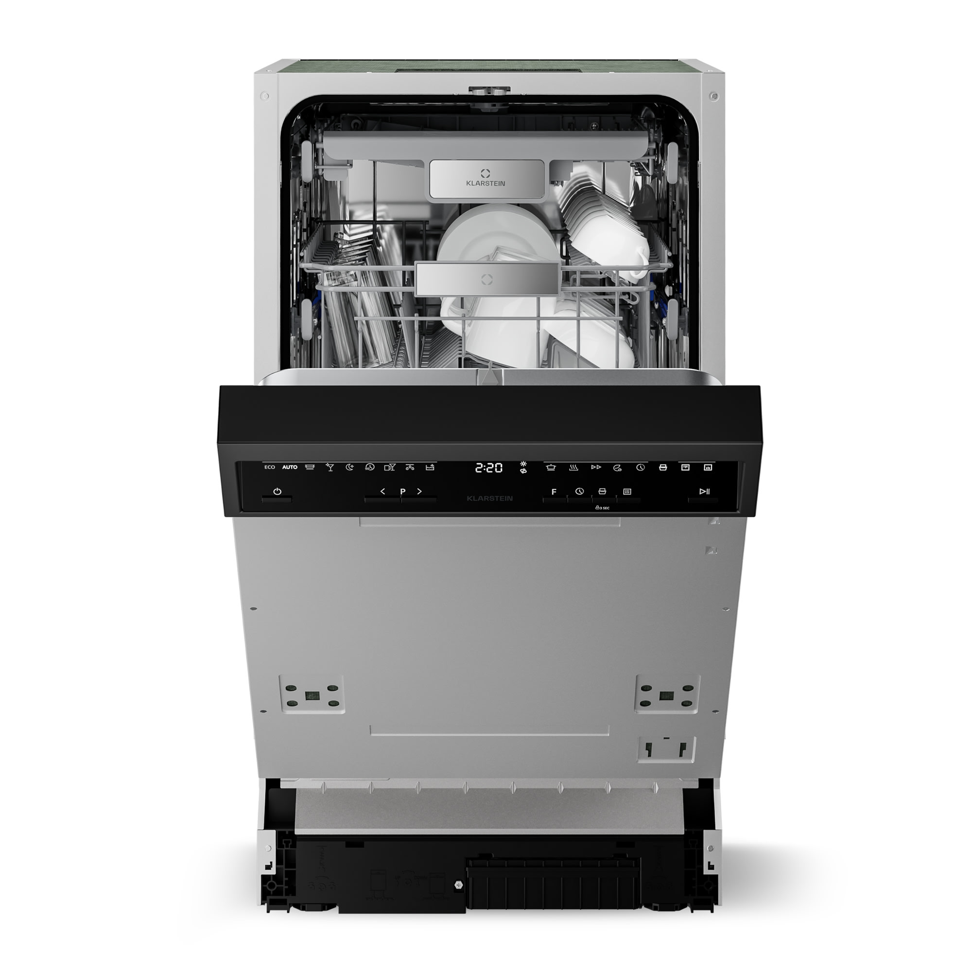 Čiastočne integrovaná umývačka riadu Klarstein Velaire kombinuje minimalistický dizajn s vysokým výkonom a energeticky úspornou technológiou. Vďaka harmonickej kombinácii matných a lesklých povrchov sa bez problémov hodí do moderných priestorov. Ako súčasť dizajnovej série Velaire stelesňuje táto umývačka riadu minimalizmus, pokoj a čistú geometriu, vďaka čomu je prirodzeným doplnkom každej dobre vybavenej kuchyne. Optimálne čistenie zaručuje deväť rôznych programov vrátane mimoriadne tichého cyklu umývania Whisper, rýchleho programu a režimu ECO. Optimálny výkon spotrebiča zaisťuje aj samočistiaci program, ktorý spoľahlivo odstraňuje nečistoty a baktérie pri teplote oplachovania do 72 °C. Vďaka technológii AquaStop umývačka okamžite rozpozná prípadný únik vody a preruší jej prívod, aby zabránila poškodeniu podlahy alebo stien. Spotrebič sa ľahko zmestí pod kuchynskú linku, pričom ovládací panel zostáva viditeľný a prednú stranu možno prispôsobiť tak, aby ladila so zvyškom kuchyne. Chceli by ste si zariadiť celú kuchyňu jednotným spôsobom s jednoduchou eleganciou? Objavte všetky naše spotrebiče Velaire a vytvorte si sofistikovaný a harmonický kuchynský zážitok!