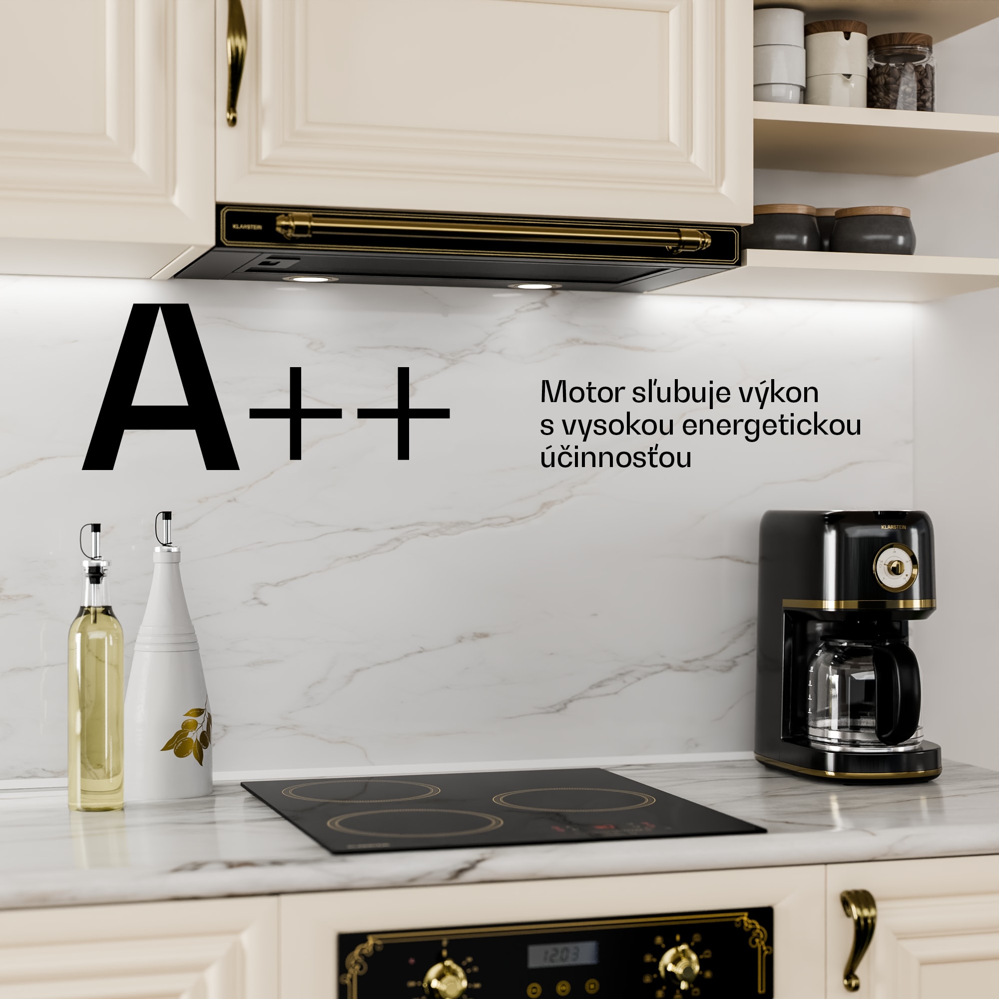 Digestor Klarstein Victoria s výsuvnou prednou časťou kombinuje retro dizajn s vysokým výkonom a modernou, energeticky úspornou technológiou. So zlatými úchytkami inšpirovanými viktoriánskym štýlom prináša do vašej kuchyne vintage nádych. Tento digestor, ktorý je súčasťou dizajnového radu Victoria, stelesňuje nadčasový šarm a je prirodzeným stredobodom každej kuchyne. Vďaka praktickej funkcii vysunutia možno pracovnú plochu digestora v okamihu zväčšiť. Kolískové spínače umožňujú presnú voľbu rôznych úrovní výkonu. Digestor je vybavený jasným LED osvetlením a ponúka nerušený výhľad na varnú plochu. Je navrhnutý pre spoľahlivé odsávanie, udržiava kuchyňu sviežu a bez zápachu s prietokom vzduchu 359 m³/h. Chceli by ste si zariadiť celú kuchyňu s eleganciou inšpirovanou viktoriánskym štýlom? Objavte všetky naše spotrebiče Victoria a vytvorte si nadčasovú, harmonickú kuchyňu!