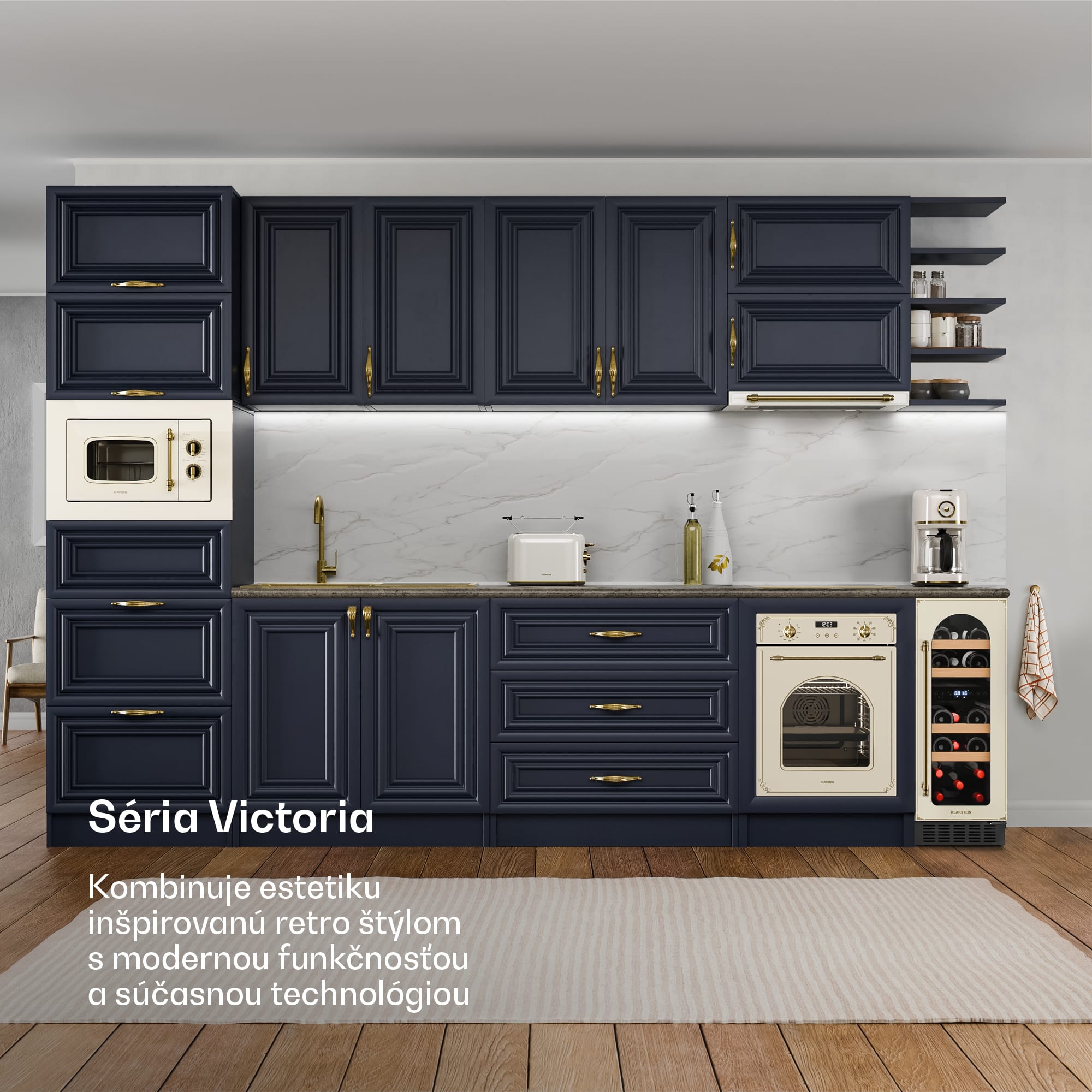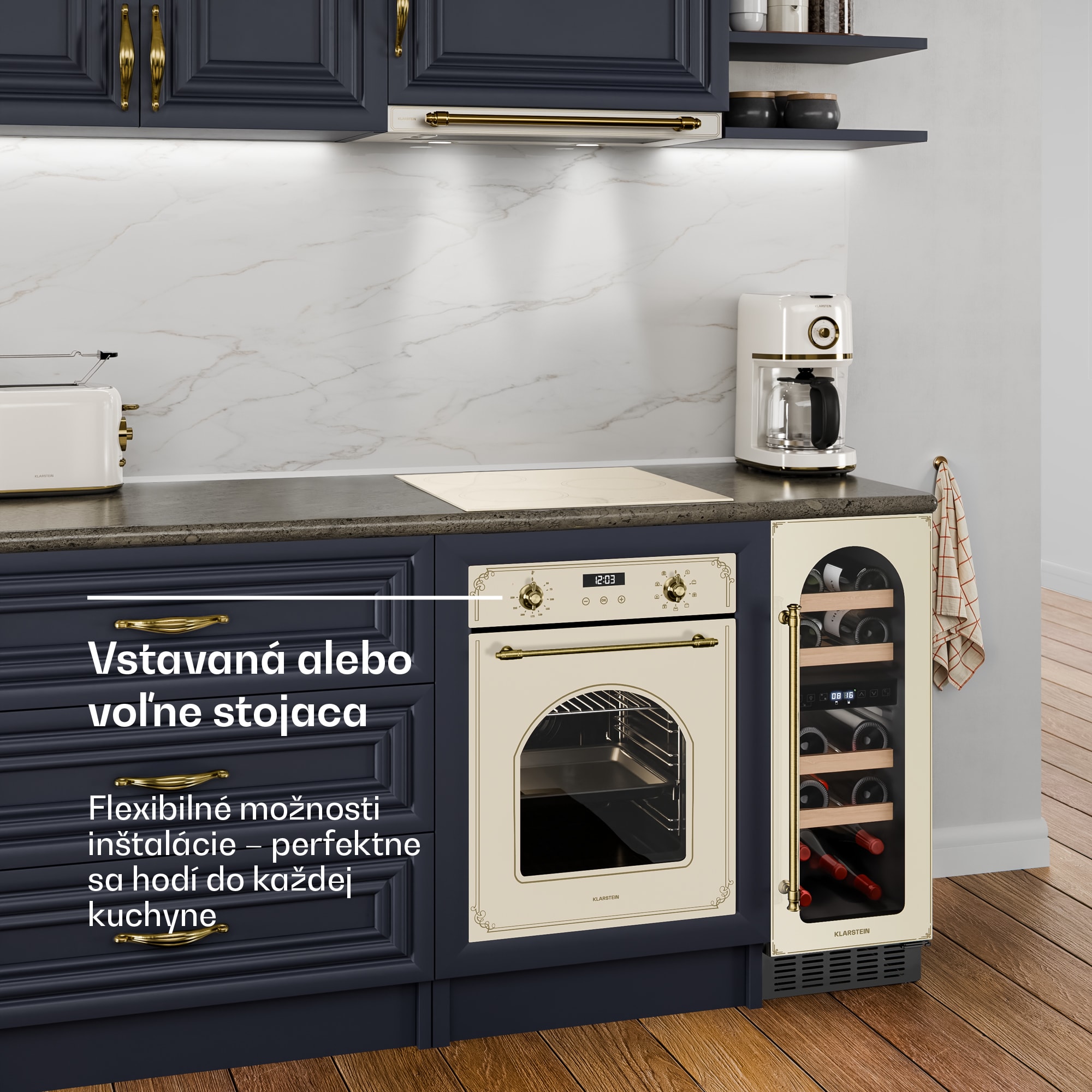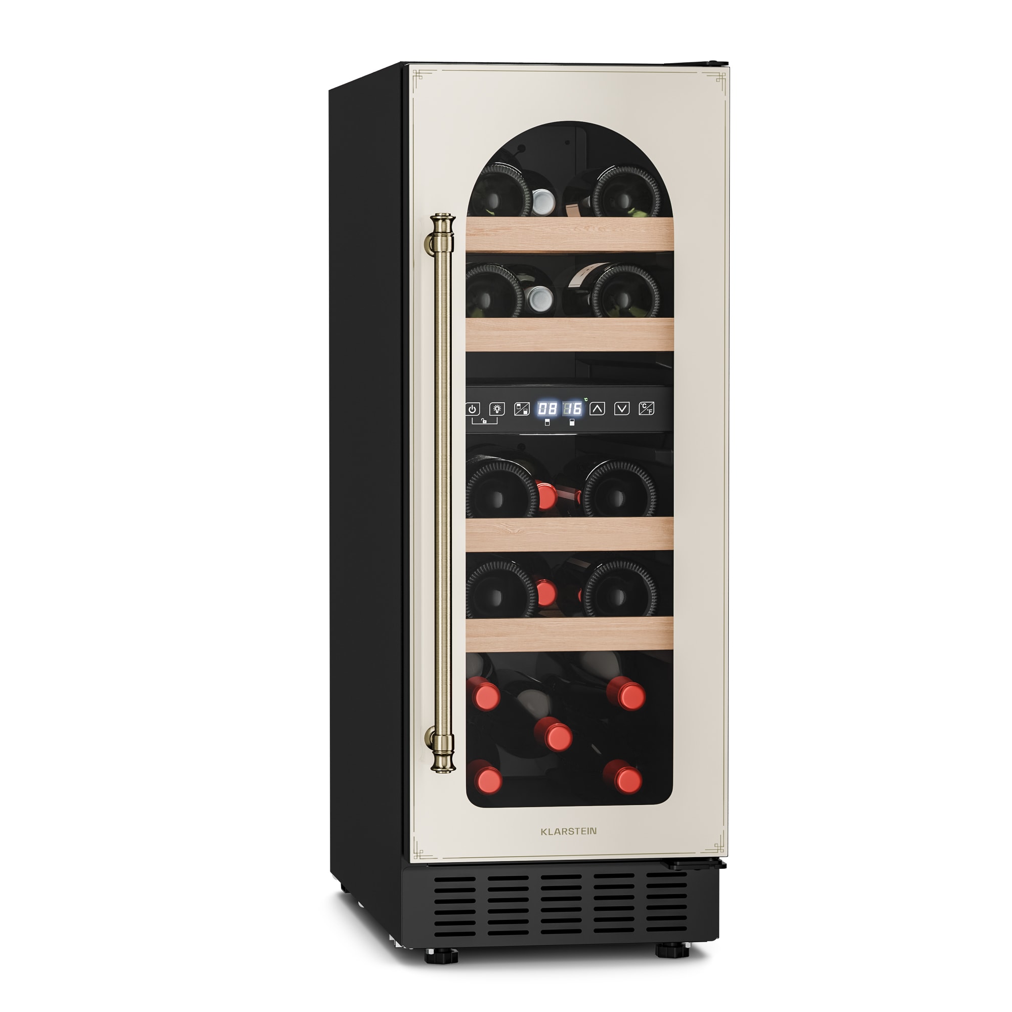 Ušľachtilý dizajn a farebná prezentácia: dvojzónová vinotéka Vinovilla Victoria 17 od Klarstein sa vojde vďaka Slim dizajnu do každej medzery! Okrem moderných sklenených dvierok zaujme chladnička na víno Klarstein Vinovilla Victoria 17 Duo najmä dvomi chladiacimi zónami. Takto môžete pri rôznych teplotách skladovať červené a biele víno súčasne. Vďaka skleneným dvierkam a vnútornému osvetleniu môžete svoje zásoby vína úžasne prezentovať! A vďaka svojmu štýlovému vintage dizajnu sa skvele hodí do vašej viktoriánskej kuchyne. Táto vstavaná vinotéka je ideálnym doplnkom pre každého milovníka vína.Sofistikované skladovanie vína: dvojzónová chladnička na víno Vinovilla Victoria 17 od spoločnosti Klarstein ponúka štýlový priestor a zaisťuje ideálne teploty na pitie!Objednajte si chladničku na víno Klarstein Vinovilla Victoria 17 Duo ešte dnes a majte po ruke dokonale temperované víno na každú príležitosť.