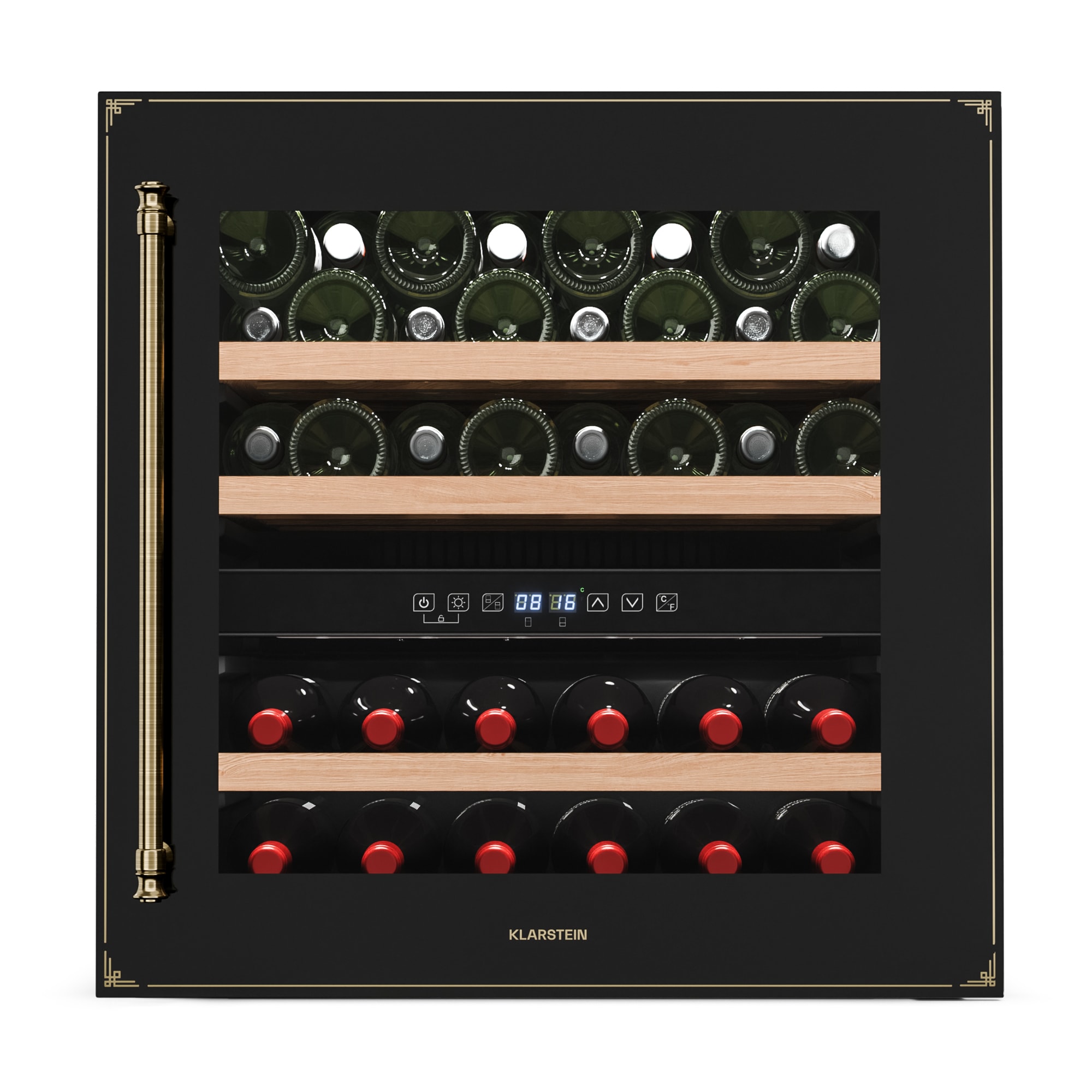 Vinotéka Klarstein Vinsider Victoria 36 kombinuje vintage dizajn s optimálnou funkčnosťou na dokonalé uskladnenie a prezentáciu vašich vín.S kapacitou až 36 fliaš ponúka chladnička na víno Klarstein Vinsider Victoria 36 dostatok priestoru pre vaše najcennejšie vína. Vysokokvalitné spracovanie s odnímateľnými drevenými policami v dvoch chladiacich zónach zaručuje nielen štýlovú prezentáciu, ale aj skladovanie bez vibrácií a s ochranou proti UV žiareniu, ktorá dlhodobo zachováva kvalitu vína. Intuitívne dotykové ovládanie umožňuje jednoduchú reguláciu teploty v rozsahu od 5 do 22 stupňov Celzia, takže vaše vína budú mať vždy ideálnu teplotu na pitie. Vďaka tichej prevádzke s hlučnosťou len 41 dB a elegantnému vnútornému LED osvetleniu chladnička na víno dokonale zapadne do každej kuchyne a vytvorí príjemnú atmosféru. Chladničku na víno je potrebné pravidelne čistiť a podľa potreby upravovať teplotu, aby sa zabezpečilo optimálne skladovanie vašich vín. Táto vstavaná vinotéka je ideálnym riešením pre každého milovníka vína.Vyskúšajte rozdiel a kúpte si chladničku na víno Klarstein Vinsider Victoria 36 pre dokonalé uskladnenie vína.
