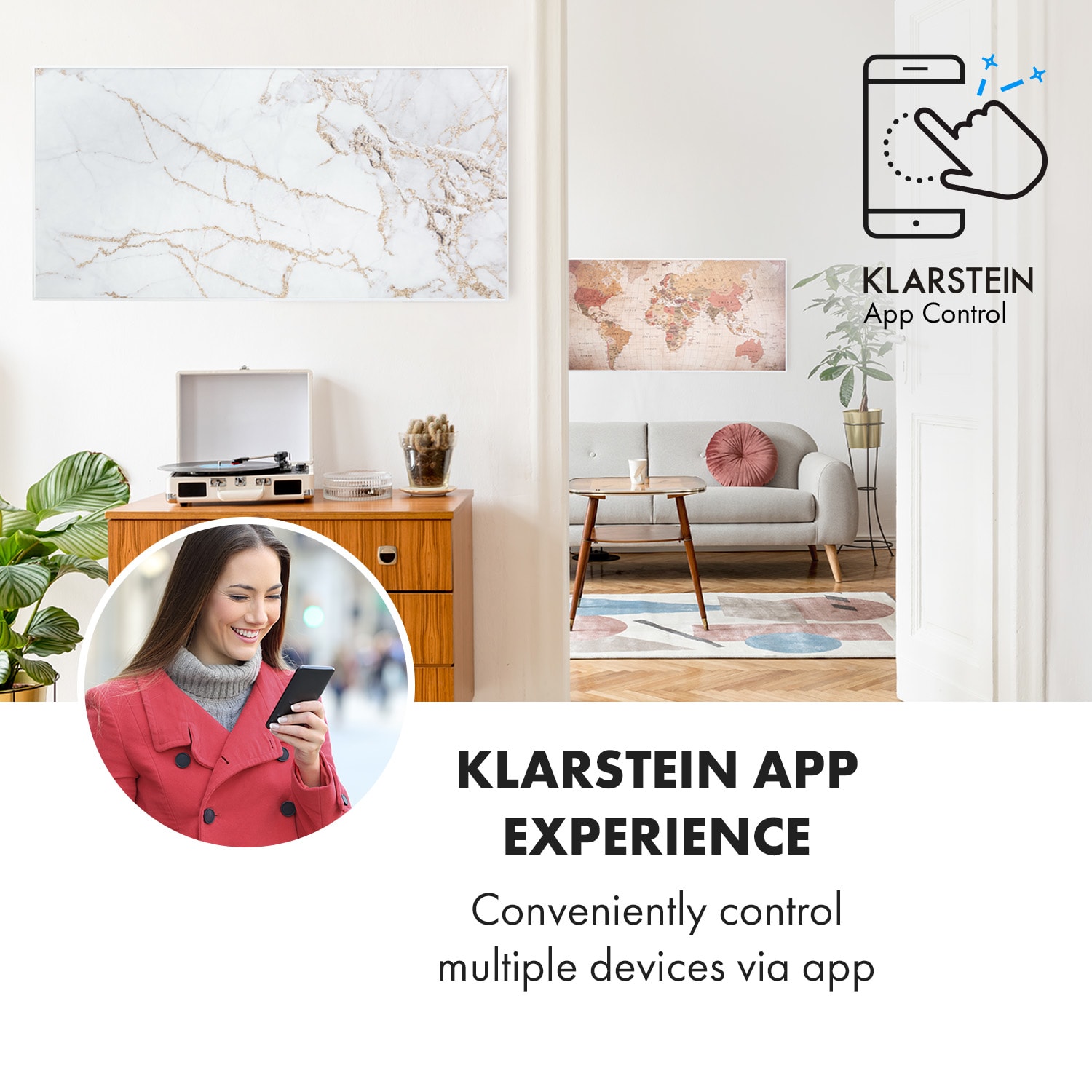 So smart technológiou na vytvorenie príjemného tepla: infračervený ohrievač Klarstein Wonderwall Air Art Smart prináša teplo do každej miestnosti veľmi efektívnym a priestorovo úsporným spôsobom a zároveň prináša so svojím povrchom s potlačeným grafickým dizajnom do miestnosti aj nový lesk a farby.Infračervený ohrievač Klarstein Wonderwall Air Art Smart predstavuje revolúciu vo vykurovaní vďaka modernej technológii. Super plochý vykurovací panel môžeš zavesiť ako Infrapanel obraz priamo na stenu, kde okamžite začne vykonávať svoju zohrievaciu službu mimoriadne priestorovo úsporne. So svojím výkonom 700 W využíva vďaka technológii IR ComfortHeat princíp slnečného tepla: namiesto pomalého zohrievania vzduchu vydáva príjemné infračervené žiarenie, ktoré priamo zohrieva osoby a predmety na ploche približne 14 m². Tvoj nový elektrický ohrievač je pritom mimoriadne energeticky efektívny: celých 98 % spotrebovanej energie sa premení na tepelné žiarenie. A pretože zariadenie Wonderwall pracuje len s tepelným žiarením, nevíri prach ani nevytvára hluk – preto je ideálnou voľbou pre alergikov a na použitie v priestoroch citlivých na hluk, ako sú kancelárie alebo spálne. Vďaka svojmu dizajnovému povrchu s grafickou potlačou je nielen zdrojom tepla, ale aj dekoratívnym pútavým doplnkom každej miestnosti.Teraz ešte inteligentnejší: nové infračervené ohrievače Klarstein Wonderwall Air Art Smart sa dajú pripojiť k miestnej sieti WiFi a potom sa dajú ovládať odkiaľkoľvek pomocou aplikácie Klarstein App Experience. Nemusíš ani chytiť svoj smartfón alebo tablet, pretože s integrovaným hlasovým ovládaním môžeš úplne jednoducho zadávať hlasové pokyny jednému zariadeniu alebo viacerým zariadeniam súčasne prostredníctvom Alexy alebo Google. Vykurovací panel sa dá, samozrejme, ovládať aj kompletne manuálne na zariadení.S termostatom a premyslenými funkciami, ako sú funkcia automatického vypnutia a detekcia otvoreného okna OpenWindow Detection, splní infračervený ohrievač aj náročné požiadavky. Nastaviteľný týždenný časový spínač umožňuje programovanie časov kúrenia na každý deň týždni. Vďaka svojmu plochému dizajnu, rýchlemu tepelnému výkonu a priestorovo úspornej montáži na stenu je ohrievač predurčený predovšetkým na použitie v kúpeľni. Preto je zariadenie Wonderwall Air Art Smart s triedou ochrany IP44 úplne chránené proti striekajúcej vode.Budúcnosť vykurovacej techniky: infračervený ohrievač Klarstein Wonderwall Air Art Smart.