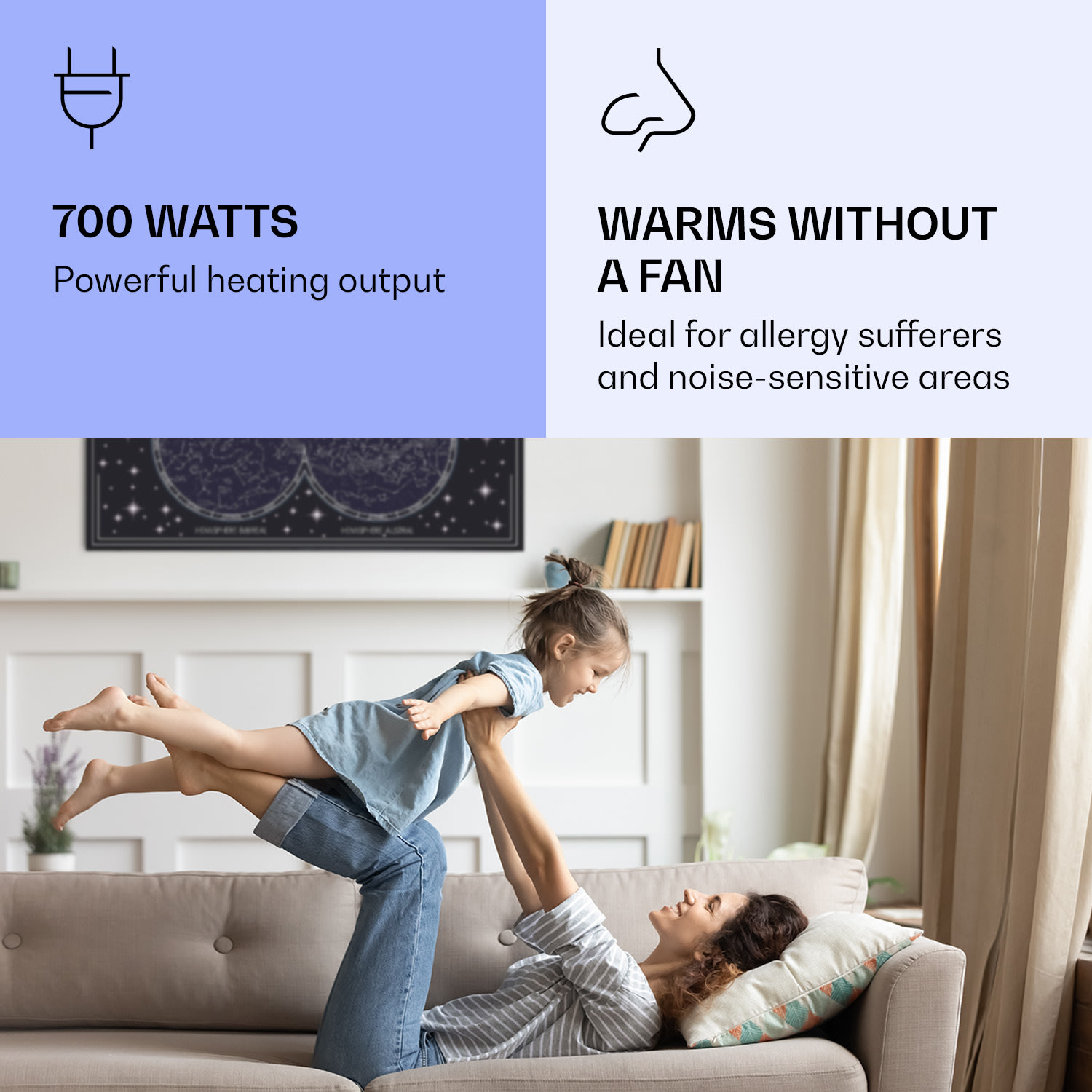 Infračervený ohrievačKlarstein Air Art Smart kombinuje vysoko efektívny vykurovací výkon s pôsobivým dizajnom a najnovšou technológiou. Prináša príjemné teplo a tiež nový lesk a farbu do každej miestnosti a pritom je energeticky veľmi efektívny a ekologický vďaka svojej infračervenej technológii. So svojím silným výkonom 700 W a vďaka technológii IR ComfortHeat šíri k ľudskej pokožke veľmi príjemné teplo, ktoré je vyžarované cielene na osoby v blízkosti ohrievača. Ovládaj veľmi jednoducho pomocou smartfónu, diaľkového ovládača alebo ovládacieho panela jeden ohrievač alebo viacero ohrievacích zariadení. Tento infrapanel obraz sa dokonale hodí do každého interiéru. Vitaj v budúcnosti vykurovacej techniky: infračervený ohrievačKlarstein Air Art Smart.
