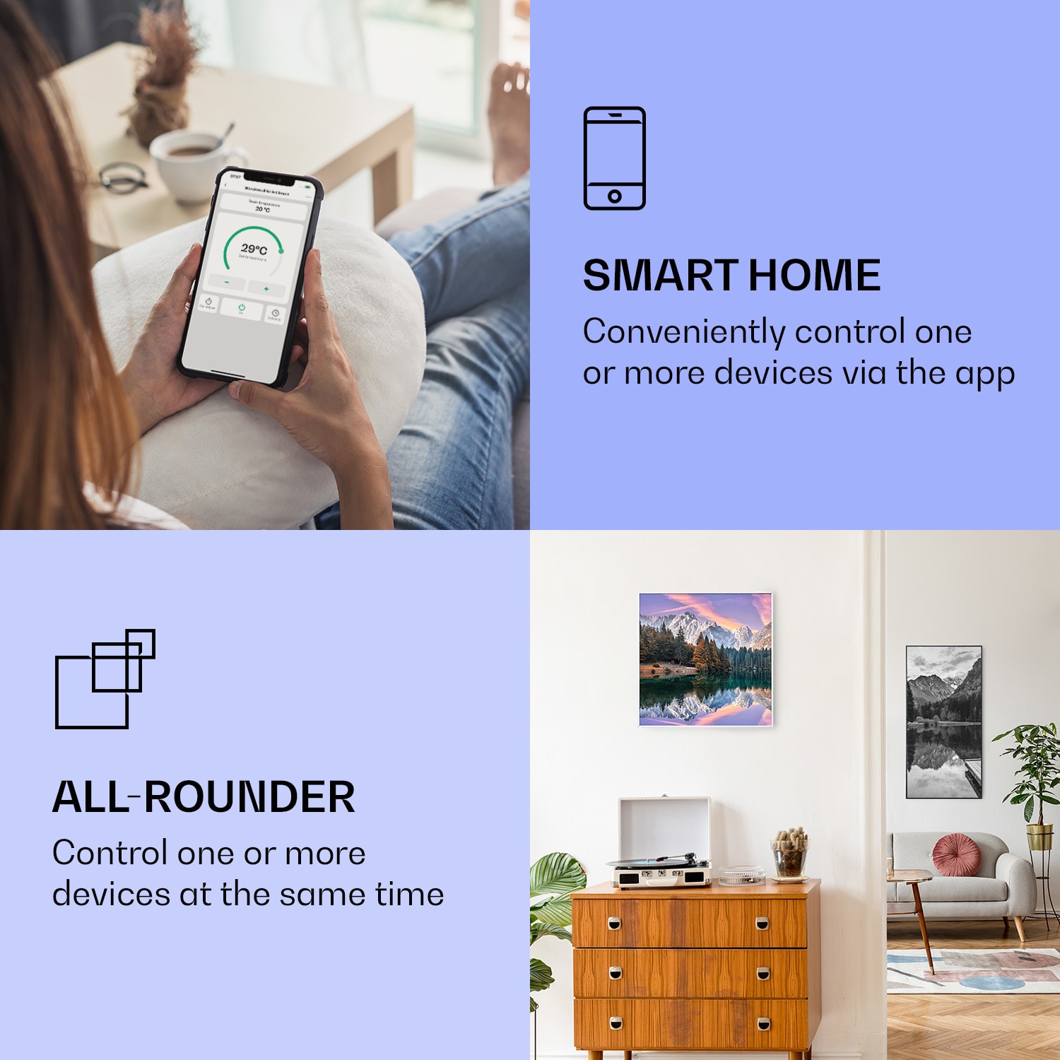Klarstein Wonderwall Air Art Smart, infračervený ohrievač, 60 x 60 cm, 350 W, more