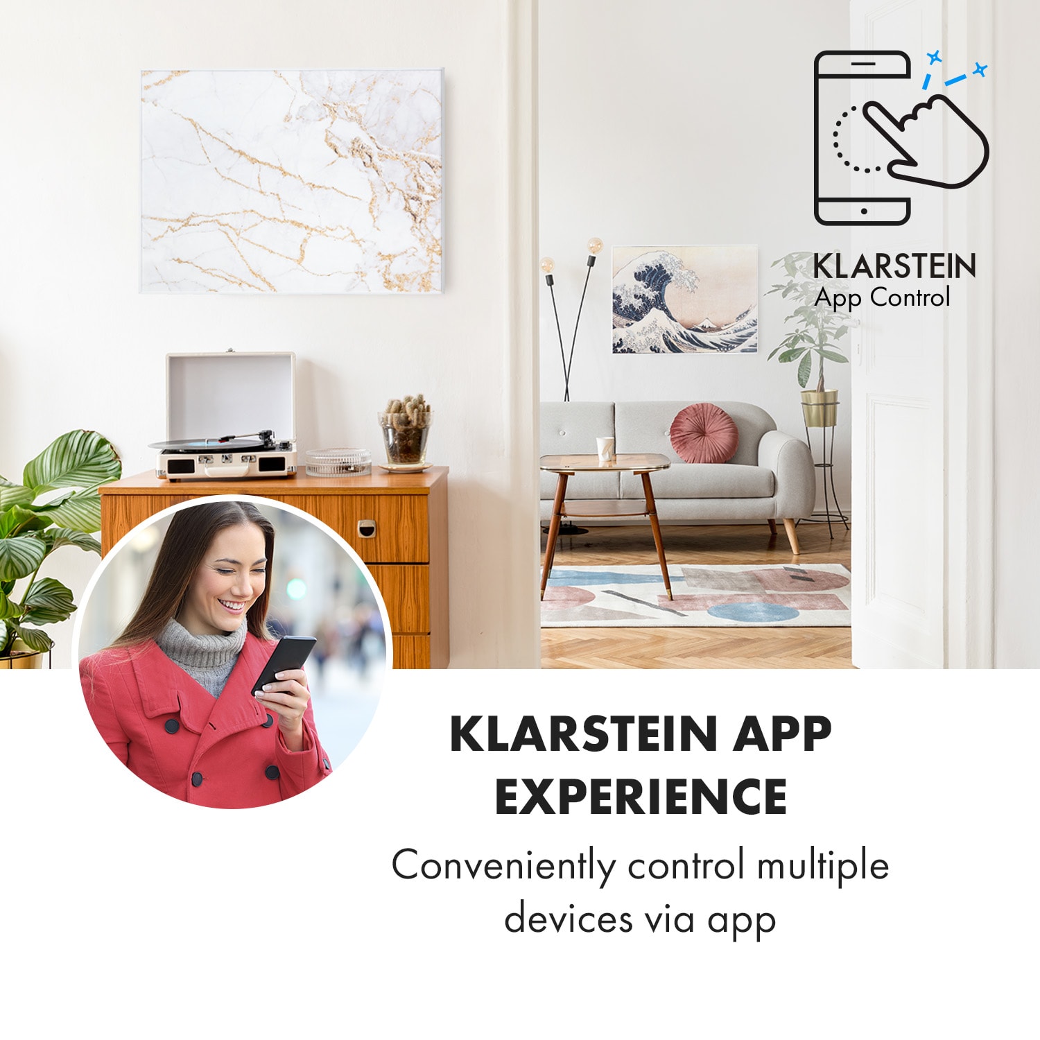 Klarstein Wonderwall Air Art Smart, infračervený ohrievač, 80 x 60 cm, 500 W, mramor –Kúpiť