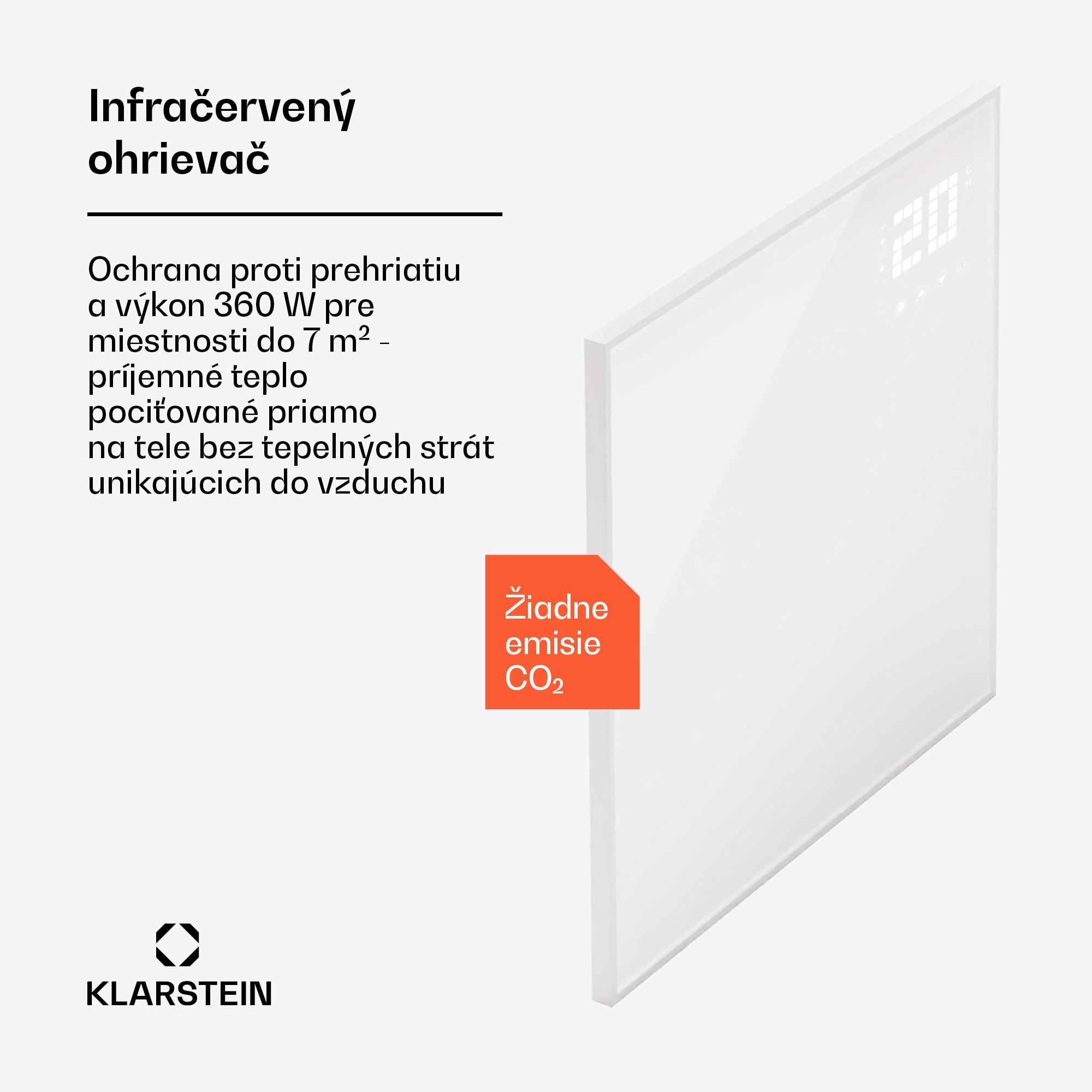 S najnovšou technológiou pre príjemné teplo: Infračervený ohrievač Klarstein Wonderwall Smart Bornholm prináša príjemné teplo do každej miestnosti vysoko efektívnym a priestorovo úsporným spôsobom.Infračervený ohrievač Wonderwall prináša revolúciu vo vykurovaní pomocou moderných technológií. Extrémne plochý, nenápadný vykurovací panel je možné zavesiť priamo na stenu a svoju úlohu zohrievania tak plní mimoriadne priestorovo úsporným spôsobom. Vďaka IR ComfortHeat využíva princíp solárneho tepla: namiesto pomalého ohrevu vzduchu vyžaruje príjemné infračervené tepelné lúče, ktoré priamo cielene ohrievajú ľudí a predmety. Váš nový elektrický ohrievač je mimoriadne energeticky účinný: celých 95 % spotrebovanej energie sa premení na tepelné lúče a nedochádza k rozvíreniu prachu ani hluku. Veľký LED displej, ktorý sa zobrazí po stlačení tlačidla, je obzvlášť praktický a uľahčuje nastavenie alebo ovládanie všetkých nastavení. Teraz ešte inteligentnejšie: Nové infražiariče Klarstein Wonderwall Smart je možné pripojiť k lokálnej WiFi sieti a následne ich nielen ovládať odkiaľkoľvek cez Klarstein App Experience, ale sú aj plne kompatibilné s Alexa. Tento elektrický infražiarič je skutočne revolučným riešením pre moderné vykurovanie.
