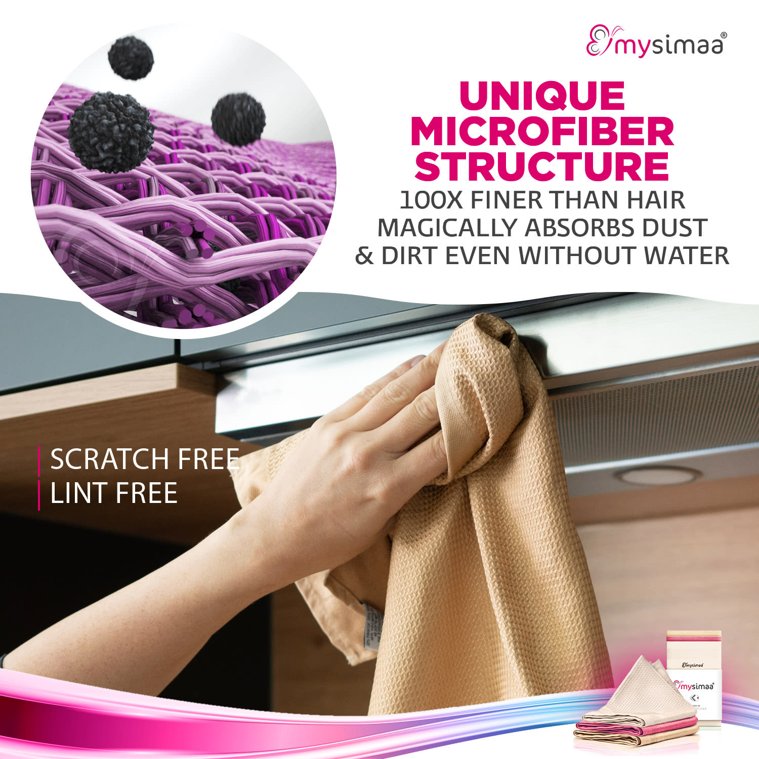Vysokokvalitné profesionálne čistiace utierky od MySimaa by blumfeldt sú mäkkým zázrakom proti špine a prachu. Exkluzívne čistiace utierky sú ideálne na rýchle a ekologické čistenie v celom dome. Môžete sa zaobísť bez akýchkoľvek čistiacich prostriedkov a spoľahnúť sa výlučne na čistiacu silu jemných mikrovlákien a čistej vody. Či už za sucha alebo za mokra – exkluzívne všestranné čistiace utierky čistia bez šmúh a nezanechávajú žmolky. Vďaka veľkosti utierky sú ideálne na leštenie skla, riadu alebo kvalitného príboru do vysokého lesku. Zázračná utierka MySimaa by blumfeldt ako všestranný pomocník, pokiaľ ide o čistotu, zaujme aj svojou dychberúcou sacou silou – takže nielen pohlcuje vlhkosť, ale takmer zázračne priťahuje aj nečistoty a prach. Či už v kuchyni, kúpeľni, pri čistení auta, utieraní prachu z televízora alebo leštení lesklých povrchov: Inovatívna utierka na prach Professional od MySimaa by blumfeldt priťahuje prach a nečistoty ako mávnutím čarovného prútika a zanecháva všade čistotu a žiarivý lesk – úplne bez chemických čistiacich prostriedkov!