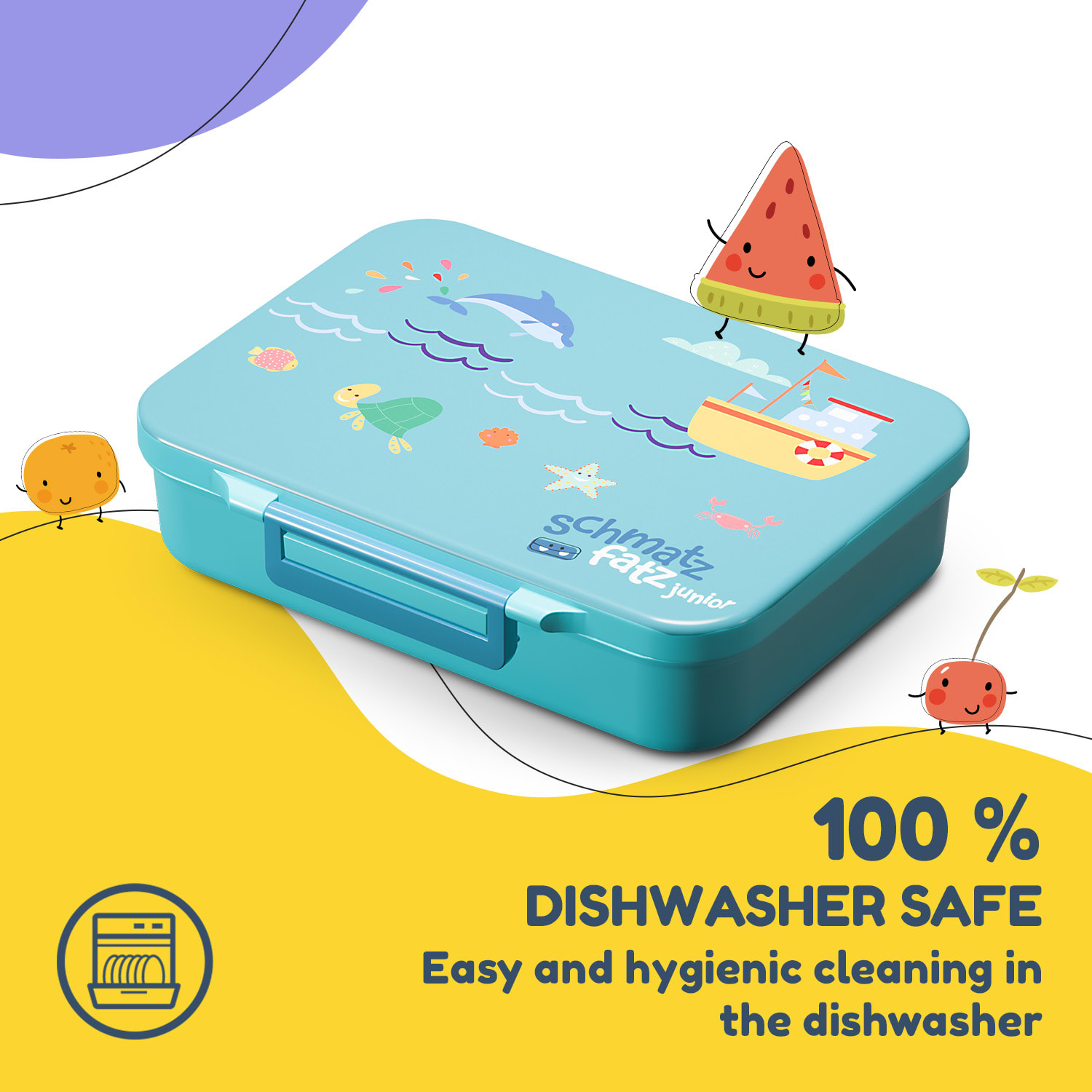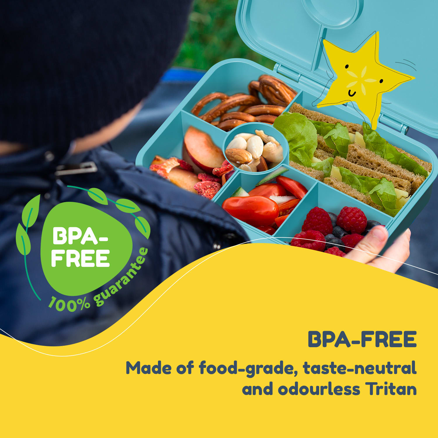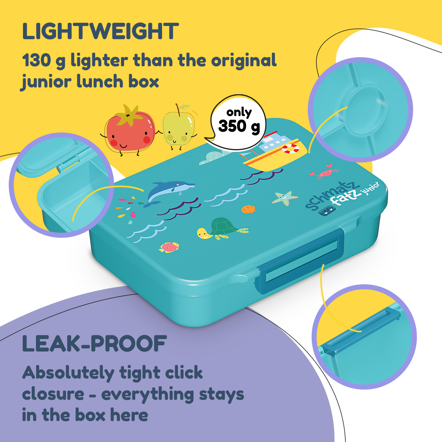 Či už vaše dieťa vyráža do škôlky, školy alebo na výlet, desiatový box Schmatzfatz Lite sa postará o to, aby každé občerstvenie zostalo čerstvé, chutné a prehľadne usporiadané počas celého dňa.Vďaka viacerým oddeleným priehradkám môžete jedlo jednoducho roztriediť – ovocie zostane svieže, syr si zachová svoju chuť a pečivo sa nepremočí. Vnútorný uzáver a vzduchotesné tesnenie zabezpečia, že ani hustejšie potraviny ako jogurt či jablkové pyré sa nevylejú. Box je vyrobený z ľahkého a odolného Tritanu bez BPA, čo zaručuje bezpečné a zdravotne nezávadné používanie. V porovnaní s bežnými desiatovými boxmi váži o tretinu menej, takže nezaťaží školský batoh ani tých najmenších.Údržba je rýchla a jednoduchá – vnútro boxu môžete vyčistiť ručne, vonkajší obal stačí utrieť vlhkou handričkou. Vďaka kvalitnému spracovaniu box vydrží aj pri každodennom používaní.