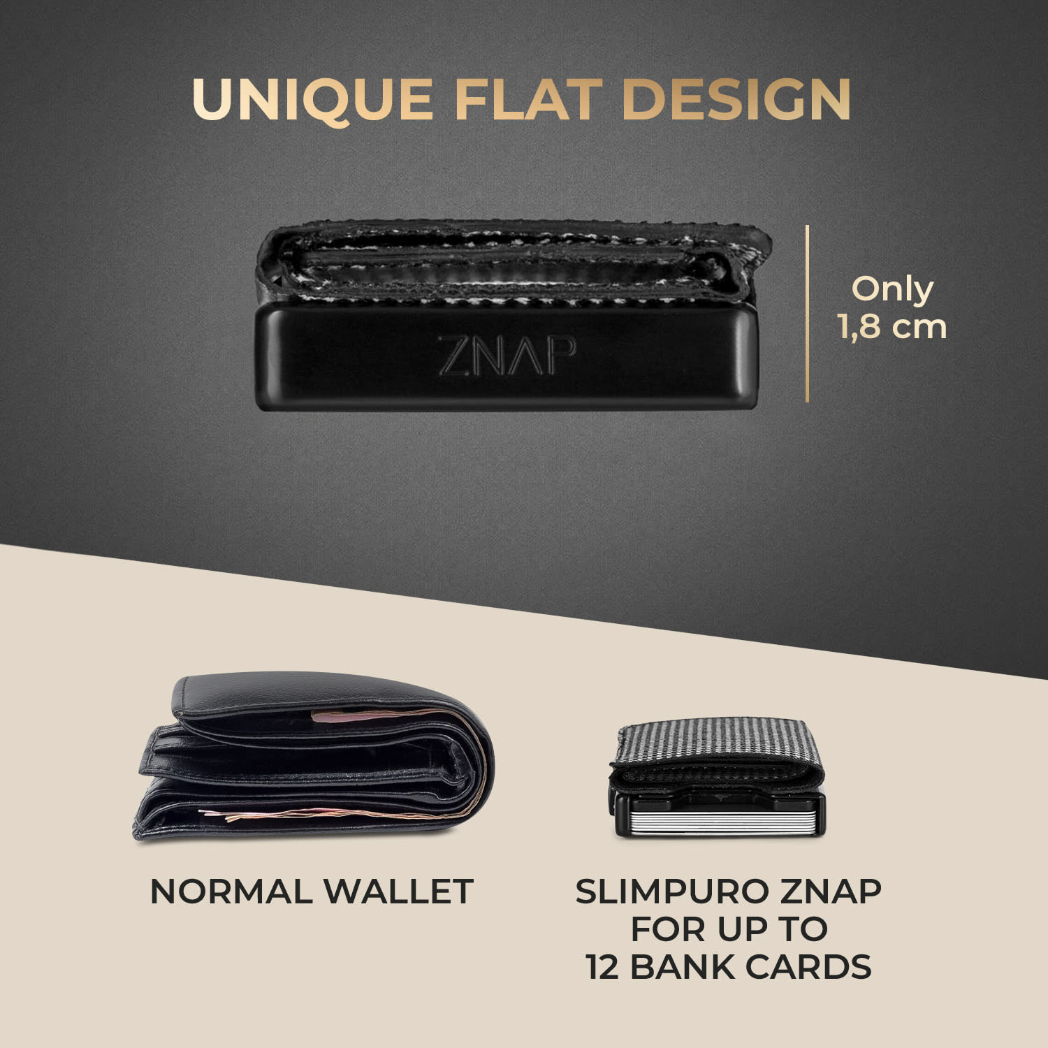 Slimpuro ZNAP Slim Wallet, 12 kariet, priehradka na mince, 8 x 1,8 x 6 cm (Š x V x H), ochrana RFID