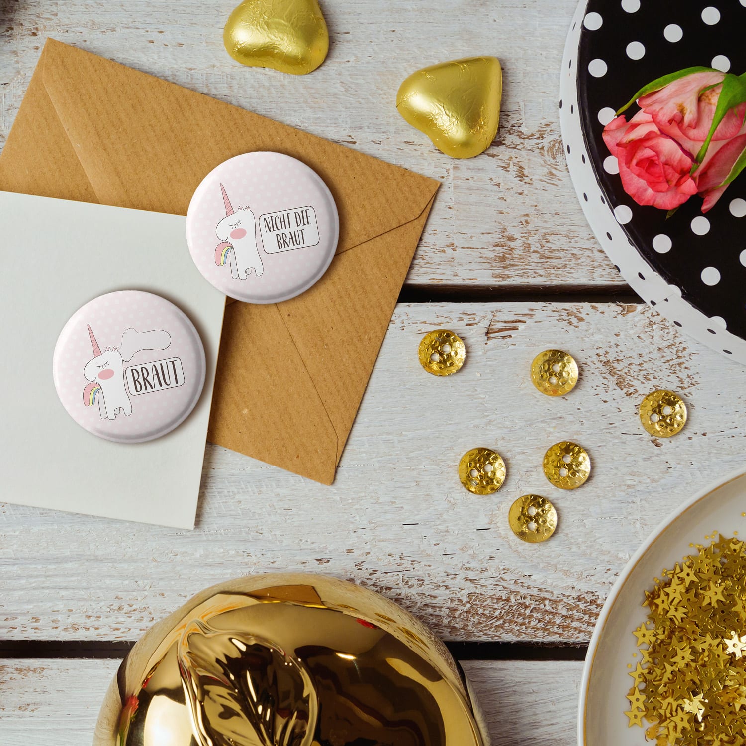 Pred veľkým svadobným dňom prichádza na rad rozlúčka so slobodou. Či už ide o krátky výlet do Paríža s priateľkami, wellness víkend medzi ženami alebo jednoducho divokú párty noc – s odznakmi od Spielehelden bude táto jedinečná udalosť nezabudnuteľná. V tejto sade je spolu 12 odznakov na dievčenskú rozlúčku so slobodou: jeden odznak len pre budúcu nevestu s nápisom „Braut“. Ďalších 11 odznakov je potlačených slovami „nicht die Braut“. Kvalita odznakovje tiež pôsobivá a špendlík mimoriadne robustný – takže sa nestratí ani pri divokej párty! Tieto nádherné odznaky sú väčšie ako bežné odznaky , a preto sú ľahko rozpoznateľné. Stačí si ich pripnúť na oblečenie alebo kabelku a ako skupina budete nepriehľadnuteľné. Podporuje to pocit spolupatričnosti v tento výnimočný deň a má to tú výhodu, že z pestrej skupiny dievčat sa rýchlo stane nerozlučná partia, aj keď sa vaše kamarátky predtým nepoznali. Extra veľké odznaky Einhorn od Spielehelden sú perfektným doplnkom na dievčenskú rozlúčku so slobodou – prebúdzajú tímového ducha v dievčenskej skupine a zároveň zostanú roztomilou spomeinkou.